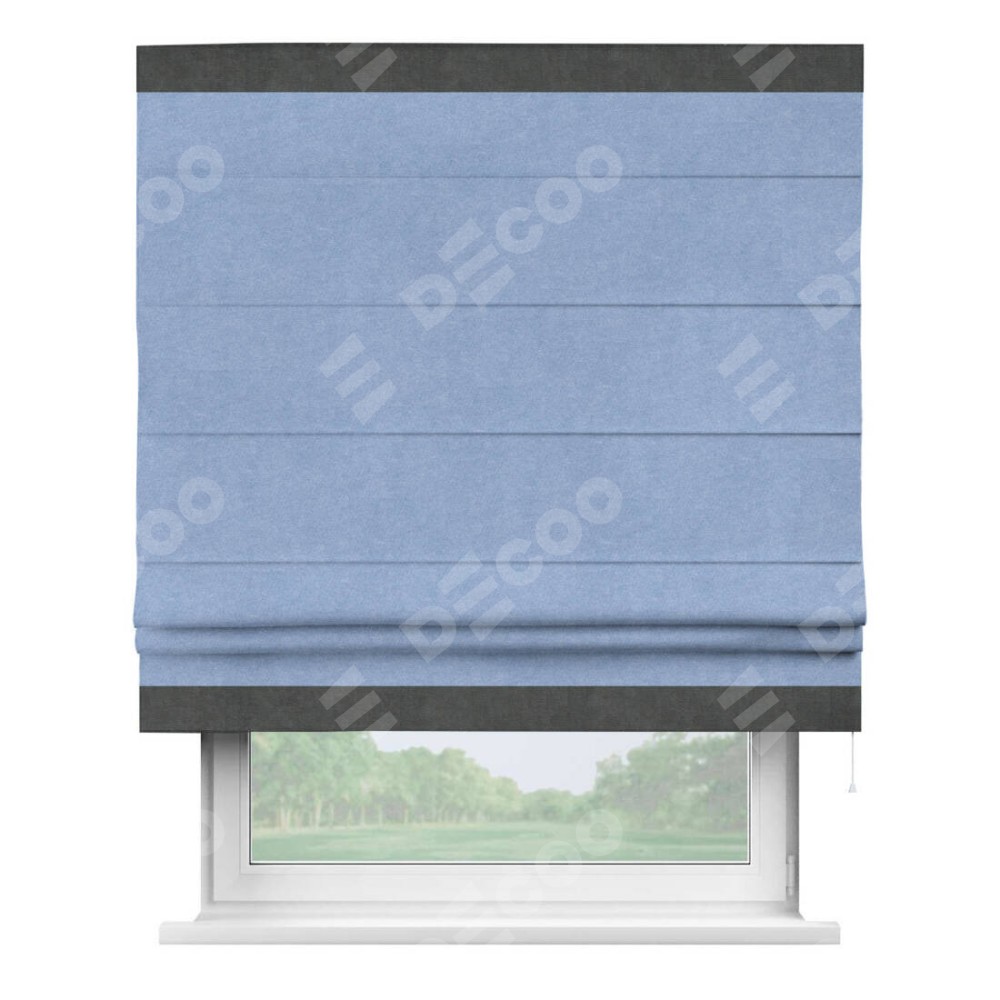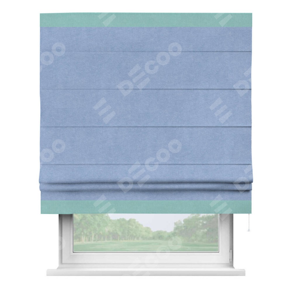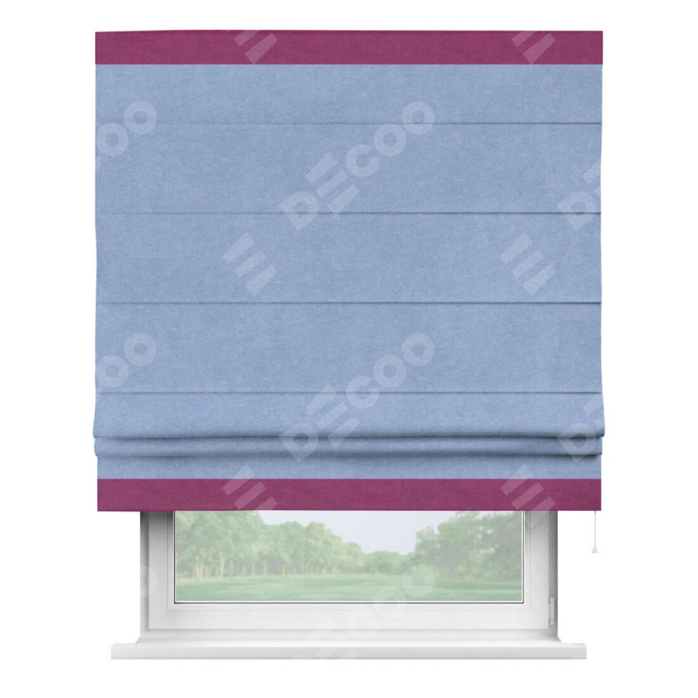 Римская штора «Кортин» для проема, вельвет васильковый с кантом Горизонт