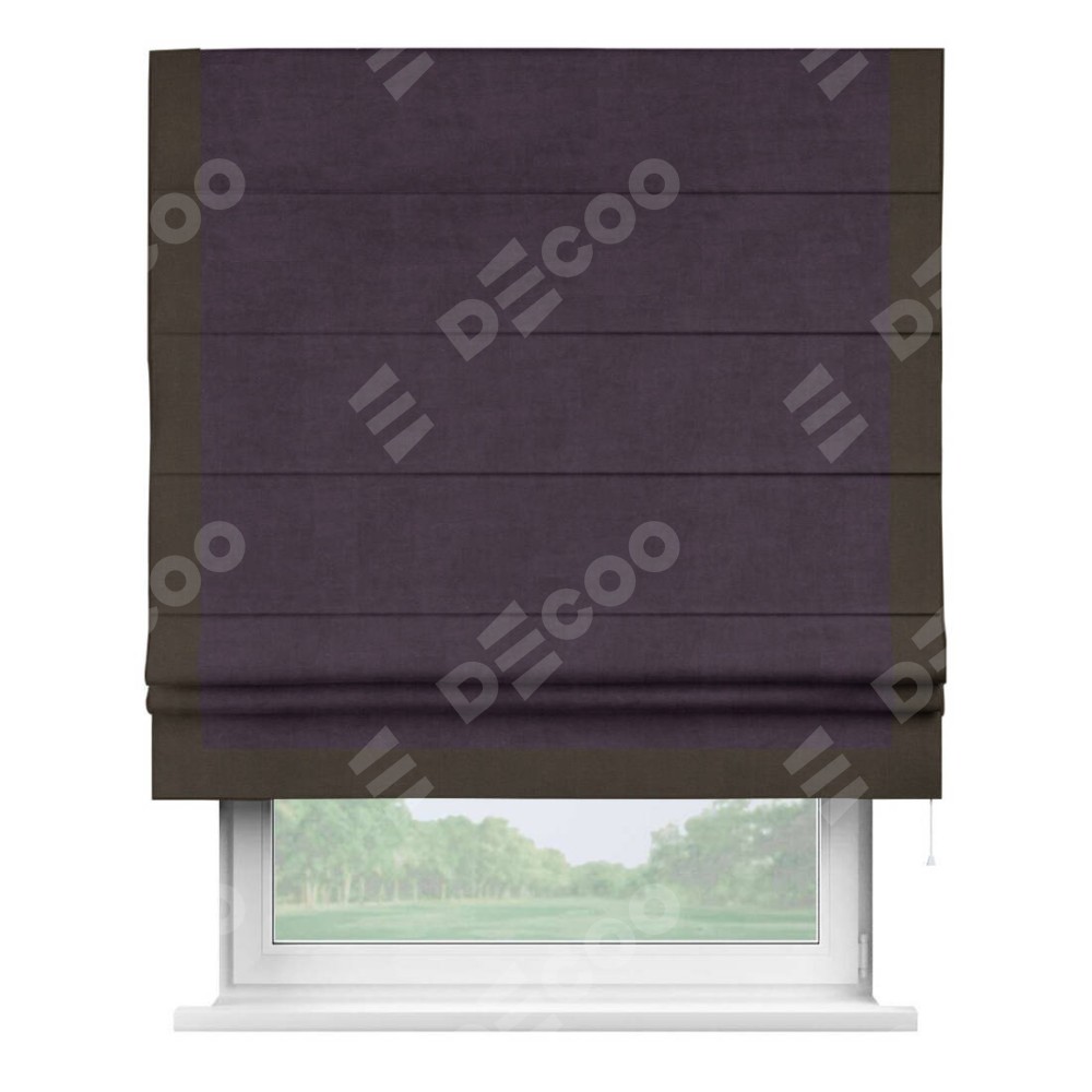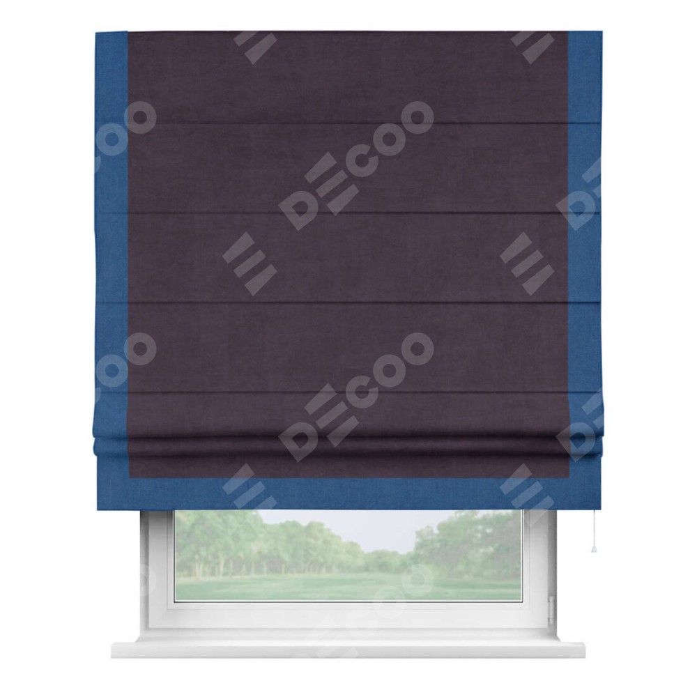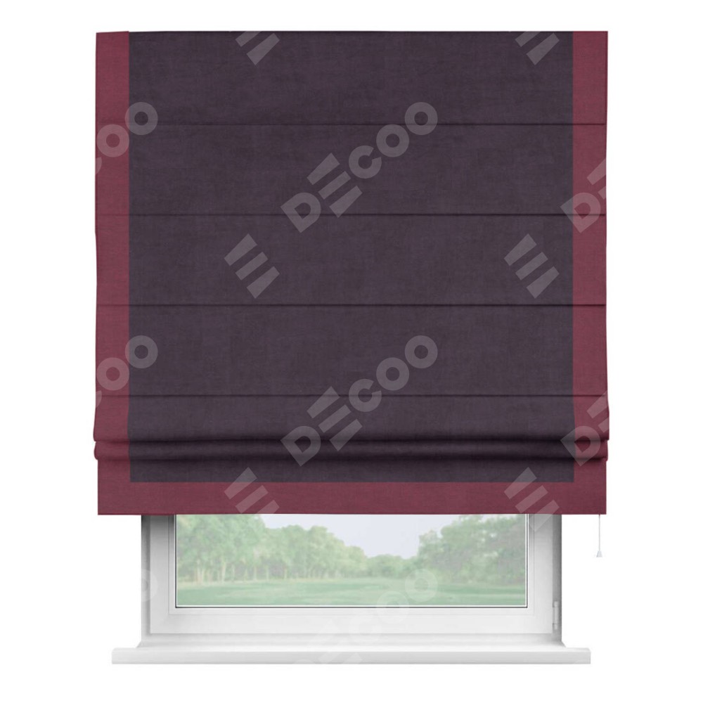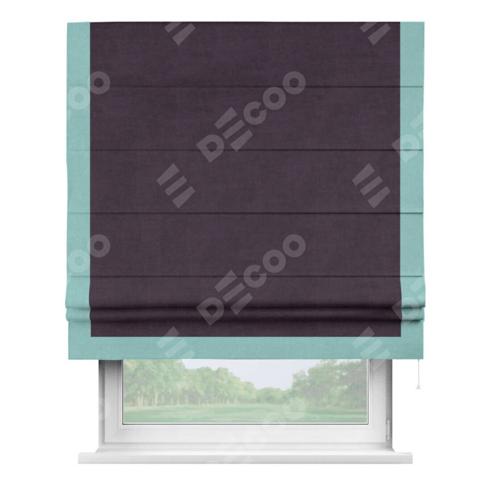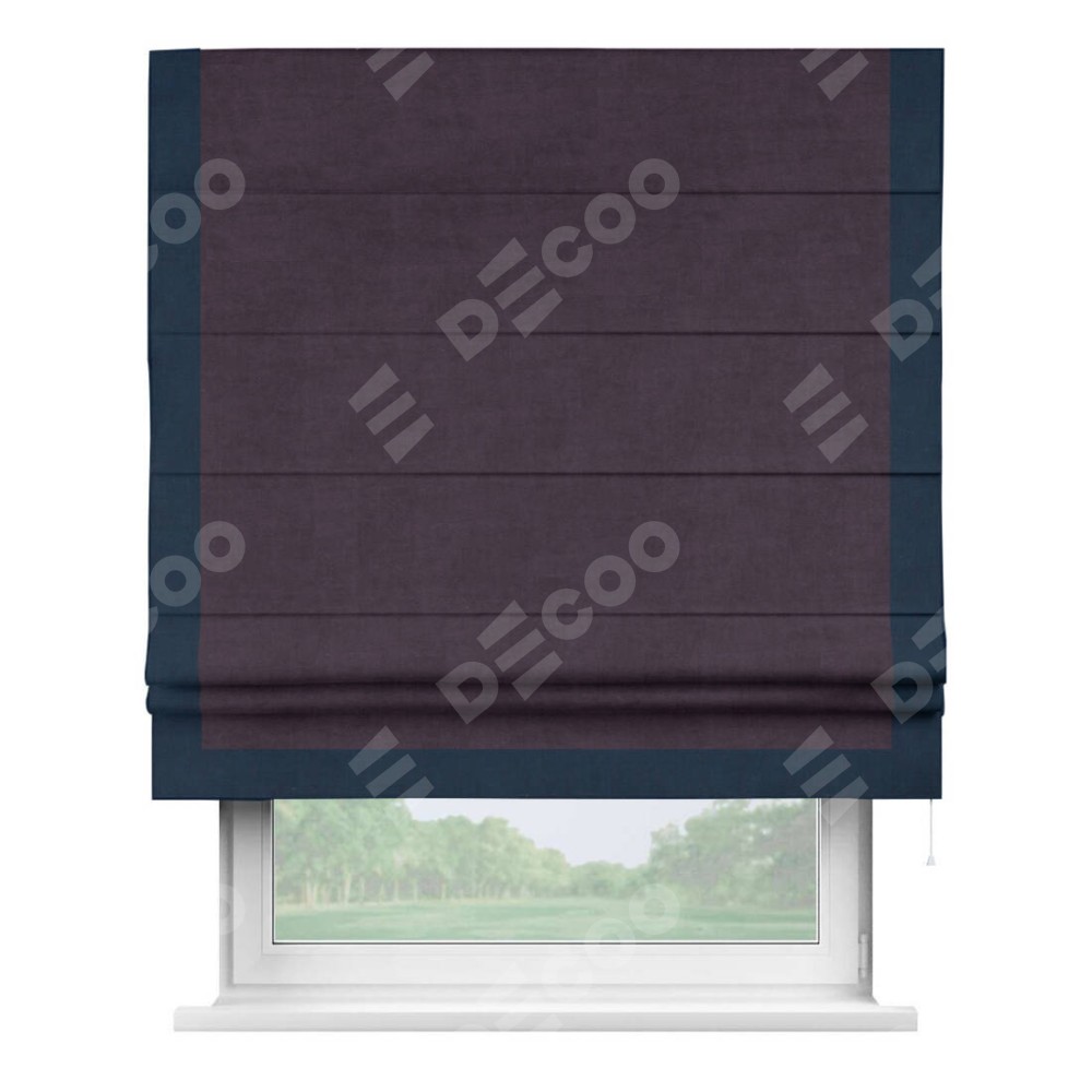 Римская штора «Кортин» для проема, вельвет тёмно-фиолетовый с кантом Виктория