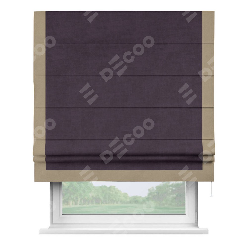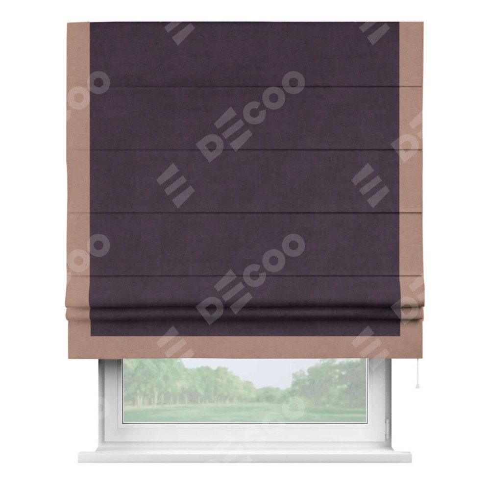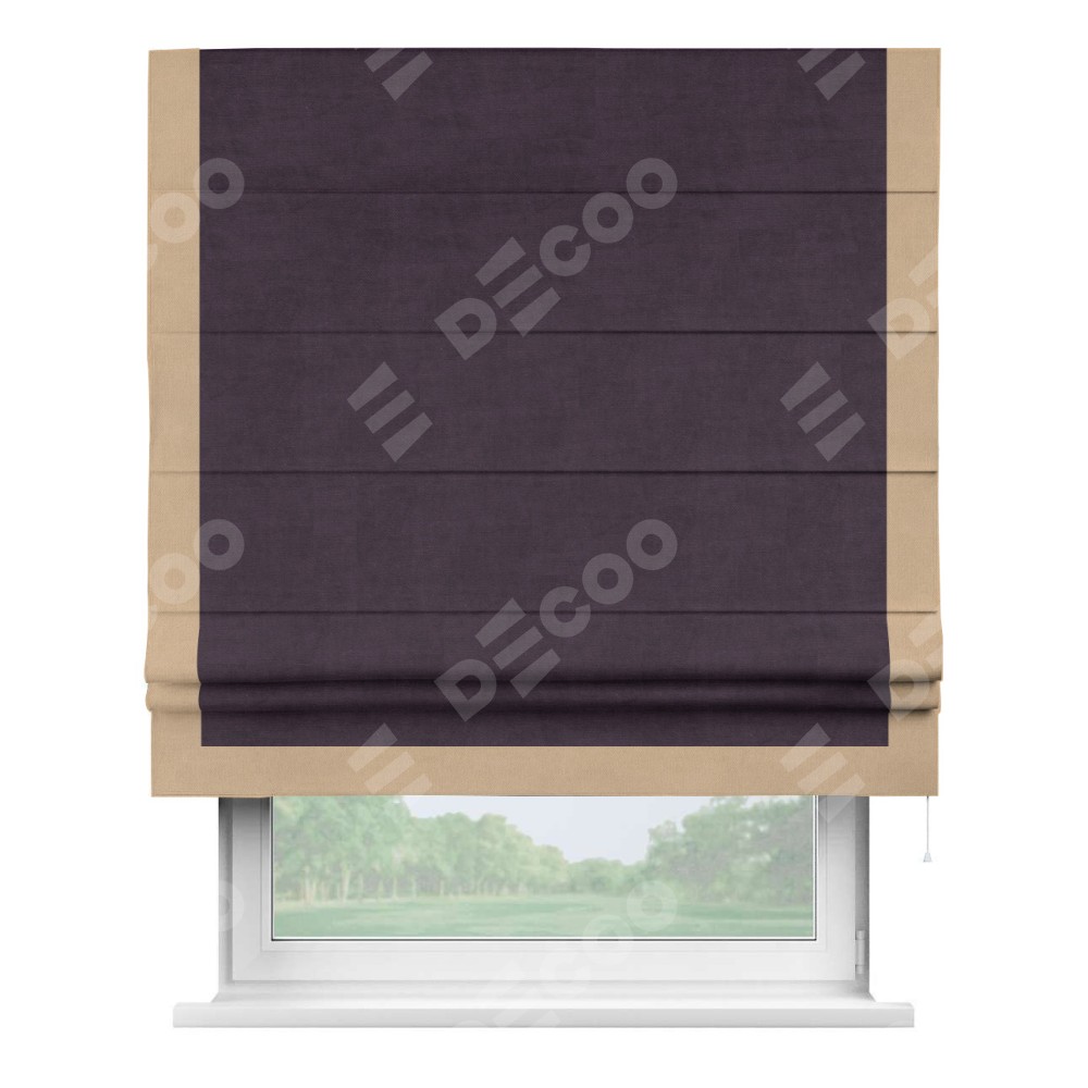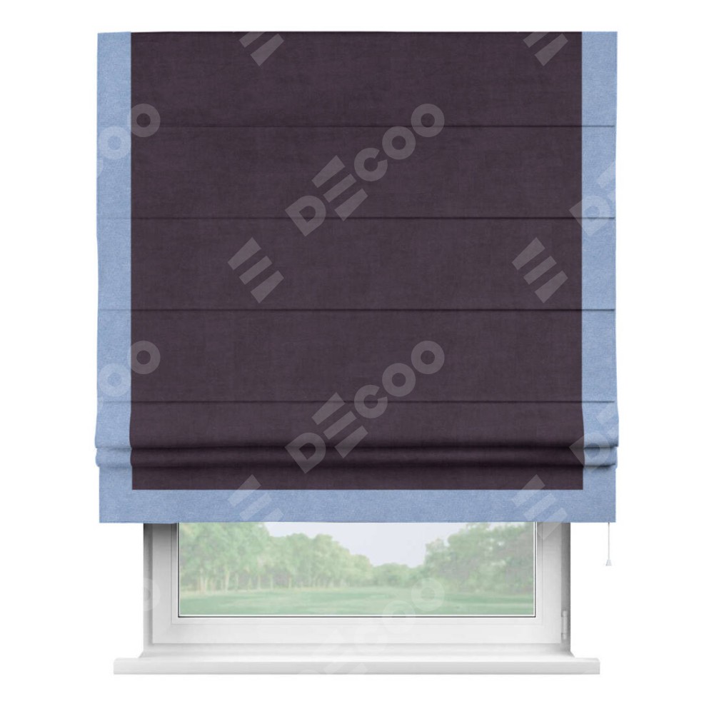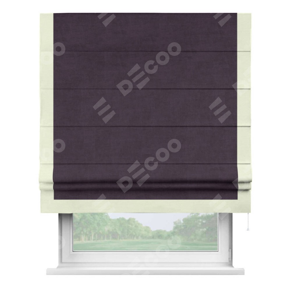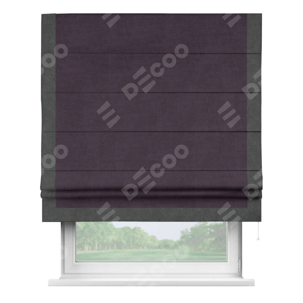 Римская штора «Кортин» для проема, вельвет тёмно-фиолетовый с кантом Виктория