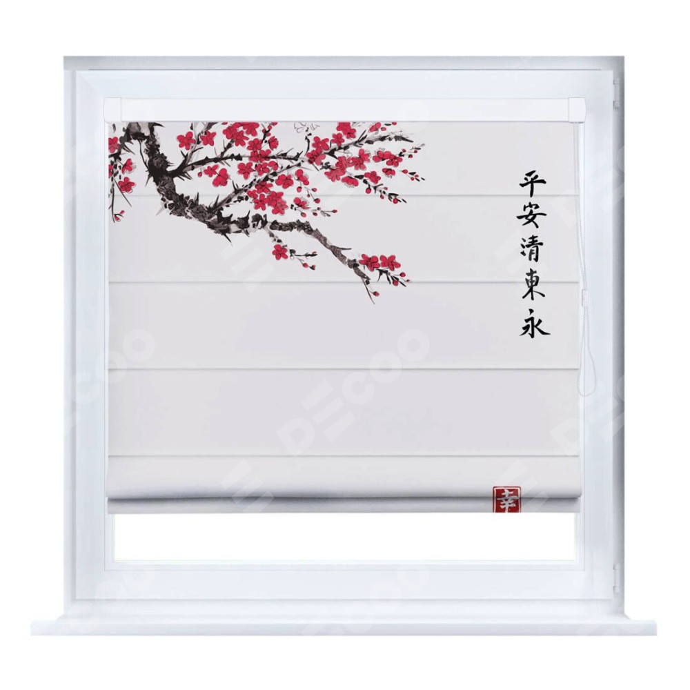 Римская штора производителя «Cortin», устанавливается на створку окна, пошита из ткани блэкаут с нанесением сублимационной печати «Цветущая сакура». Штора шьётся по индивидуальным размерам, для данного типа римской шторы возможная ширина от 35 до 150 см., высота до 250 см.