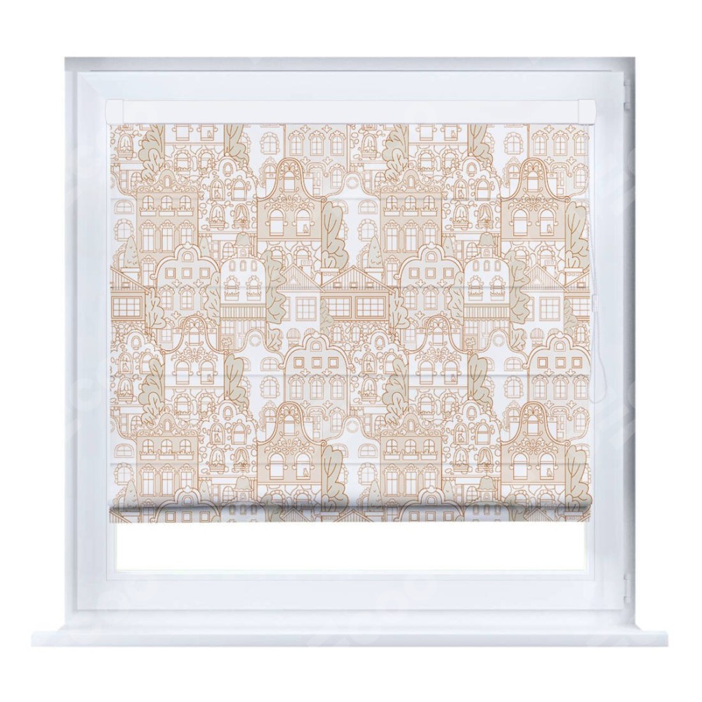 Римская штора «Кортин» на створку «Милый городок» отлично подойдёт для интерьера: в кухню, на балкон и в детскую.