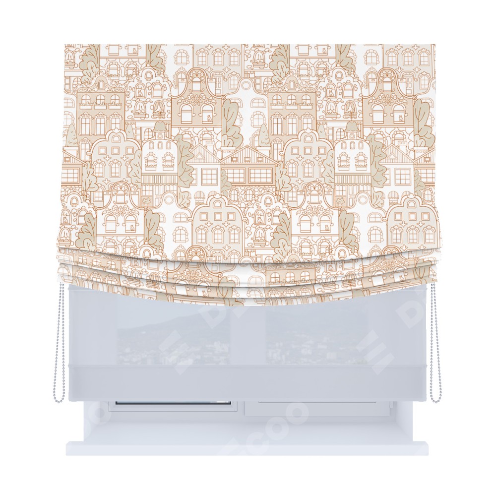 Римская штора день-ночь производителя «Cortin», используется для проёма, пошита из двух полотен, с лицевой блэкаут с нанесением сублимационной печати «Милый городок», вторая ткань тюль (по стандарту комплектуется тюль белого цвета артикул V-01). Имеет универсальный механизм и подходит для монтажа: на потолок, на стену и в нишу. Удобное управление каждой шторой отдельно.