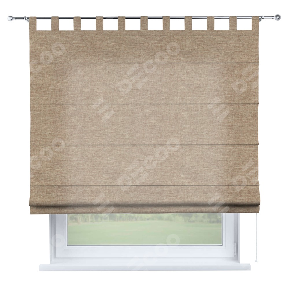 Римская штора производителя «Cortin», используется для проёма, пошита из ткани лён кашемир коричневый, артикул ткани 21614. Данная модель пошита на петлях, комплектуется на выбор круглым карнизом и подходит для монтажа на стену. Римская штора на петлях имеет простую систему регулировки высоты, отличительным преимуществом данной модели является простой способ монтажа. Достаточно повесить ее на трубу и штора готова!