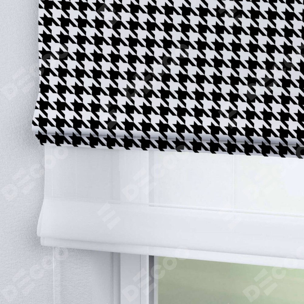 Римская штора «Кортин» день-ночь «Гусиные лапки» черно-белый» отлично подойдёт для интерьера: в кухню, на балкон и в гостиную.