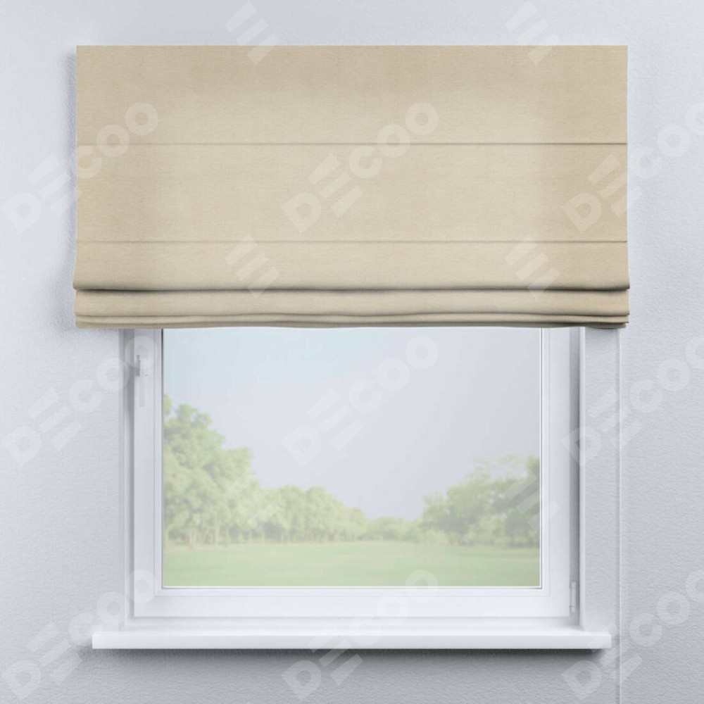 Римская штора производителя «Cortin», используется для проёма, пошита из ткани лён кашемир шампань, артикул ткани 17205. Имеет универсальный механизм и подходит для монтажа: на потолок, на стену и в нишу.