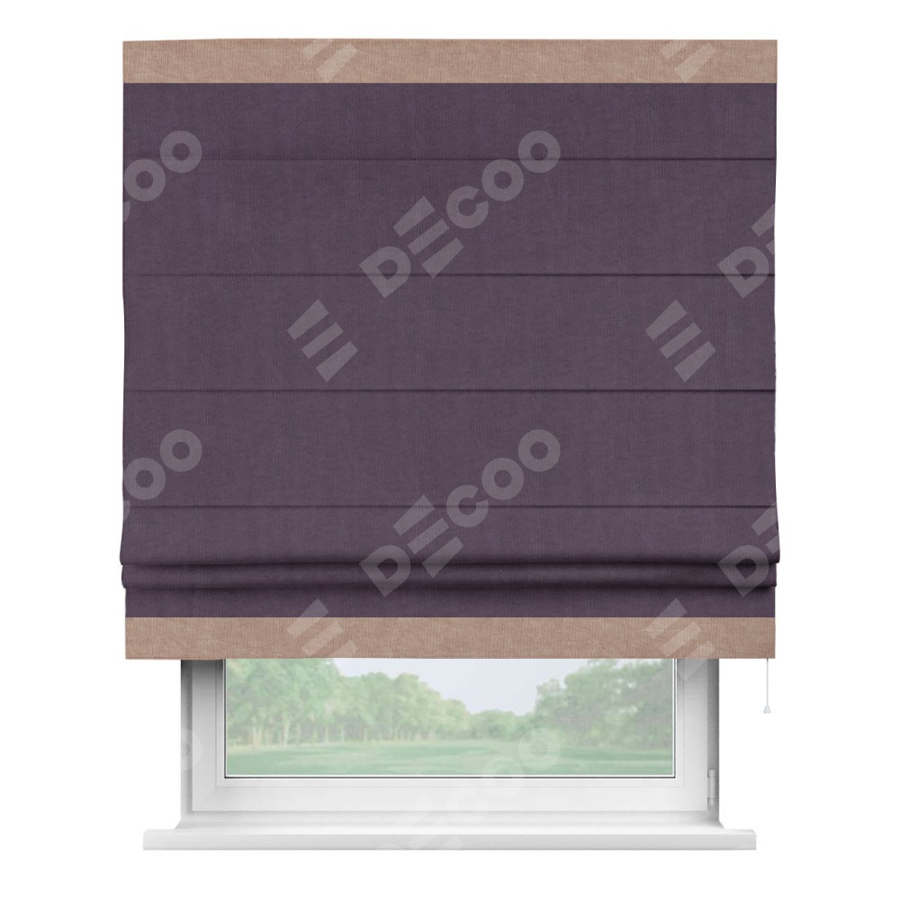 Римская штора «Кортин» для проема, канвас баклажановый, с кантом Горизонт