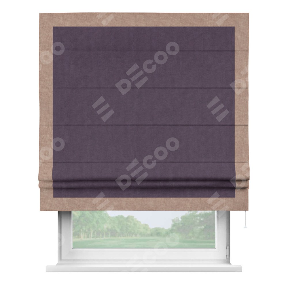 Римская штора «Кортин» для проема, канвас баклажановый, с кантом Чесс