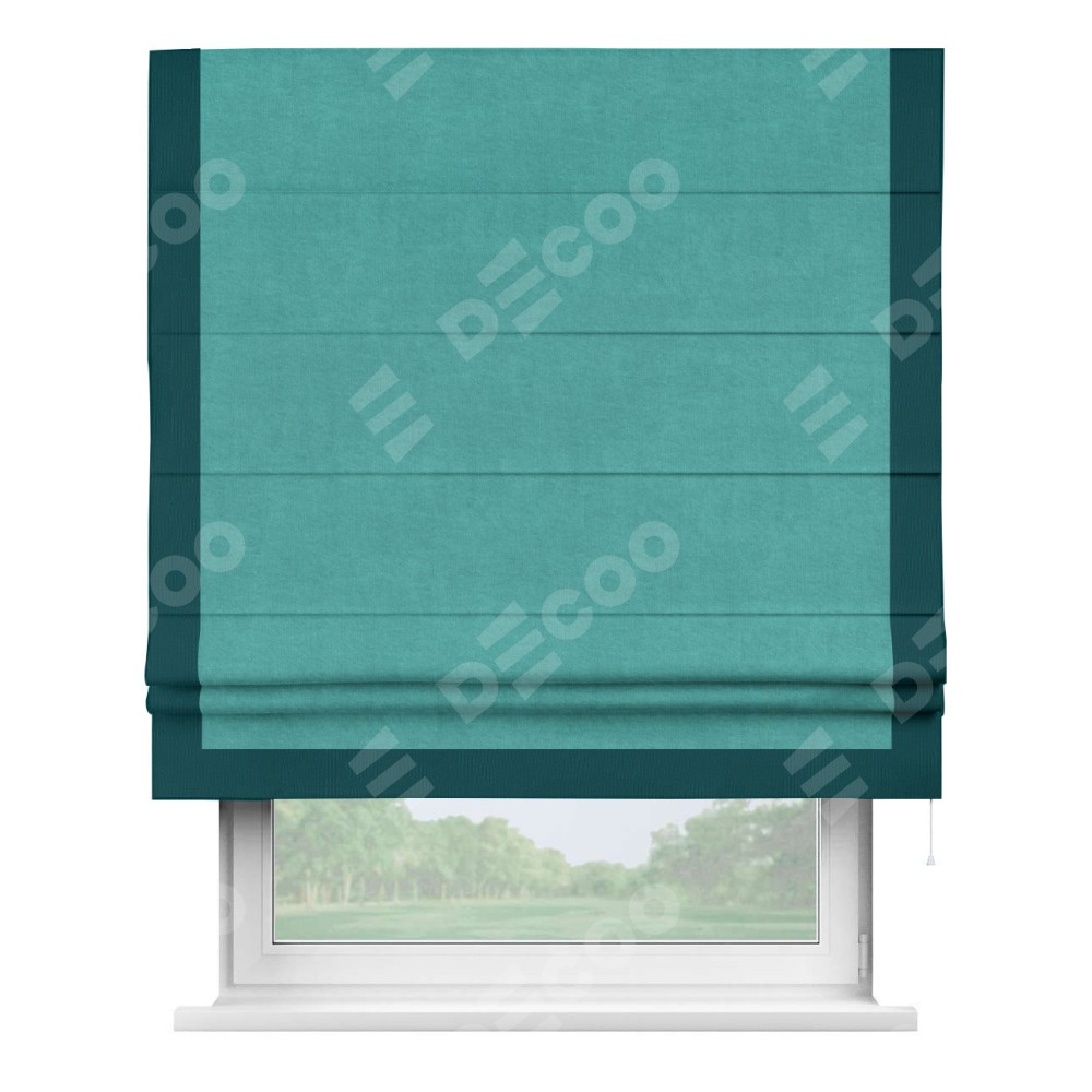 Римская штора «Кортин» для проема, канвас бирюзовый, с кантом Виктория