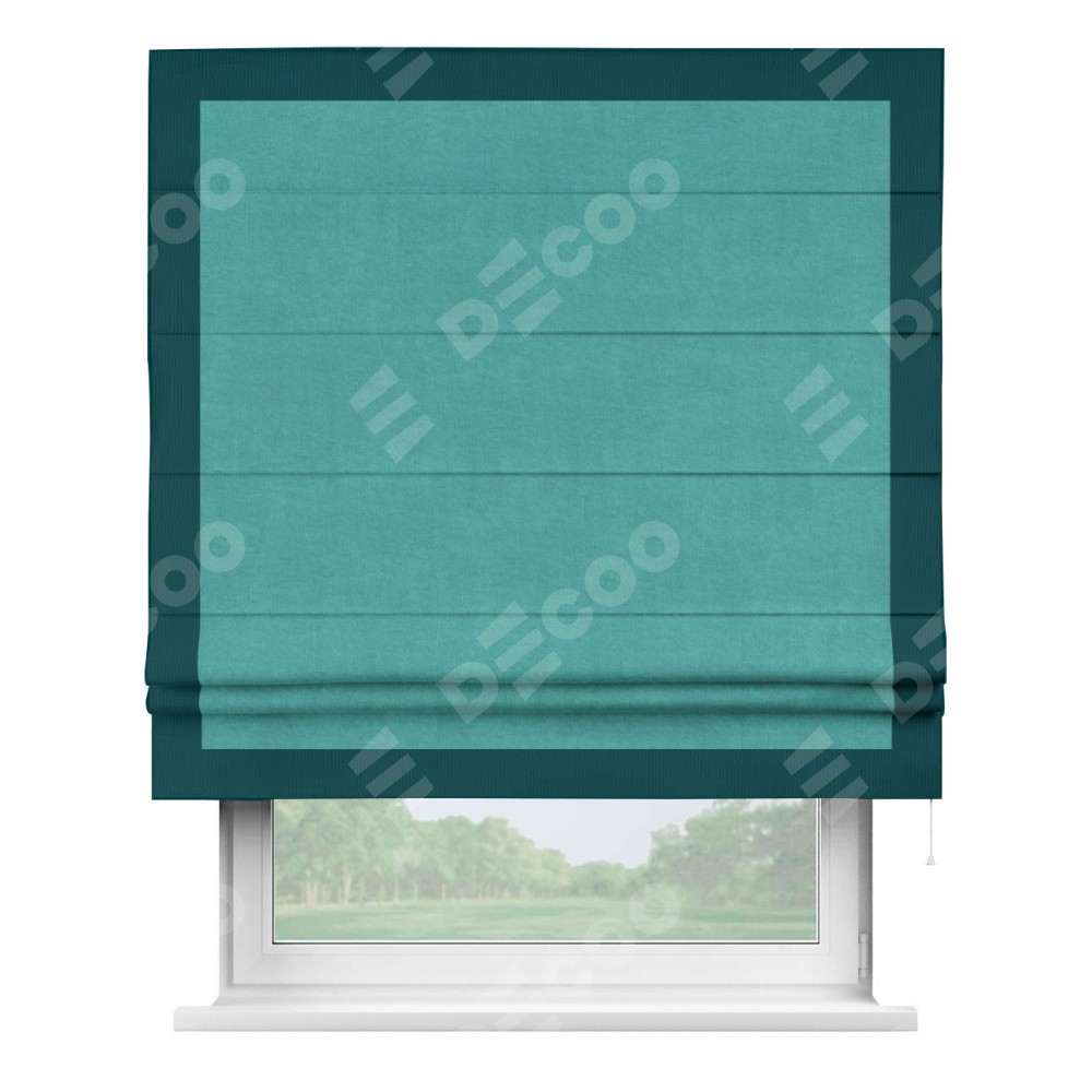 Римская штора «Кортин» для проема, канвас бирюзовый, с кантом Чесс
