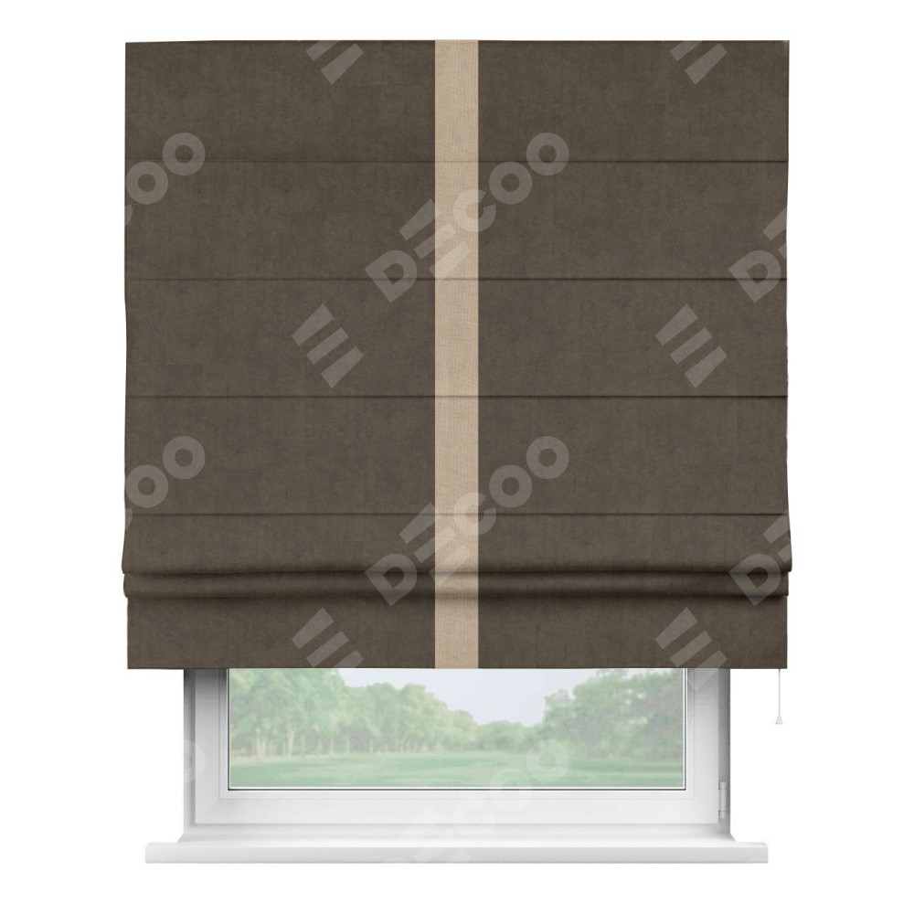 Римская штора «Кортин» для проема, канвас коричневый, с кантом Хайвэй