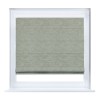 Римская штора кассетного типа, производителя «Cortin», устанавливается только на пластиковые окна и прилегает к стеклопакету, пошита из ткани лён кашемир серо-зелёный, артикул 21618.