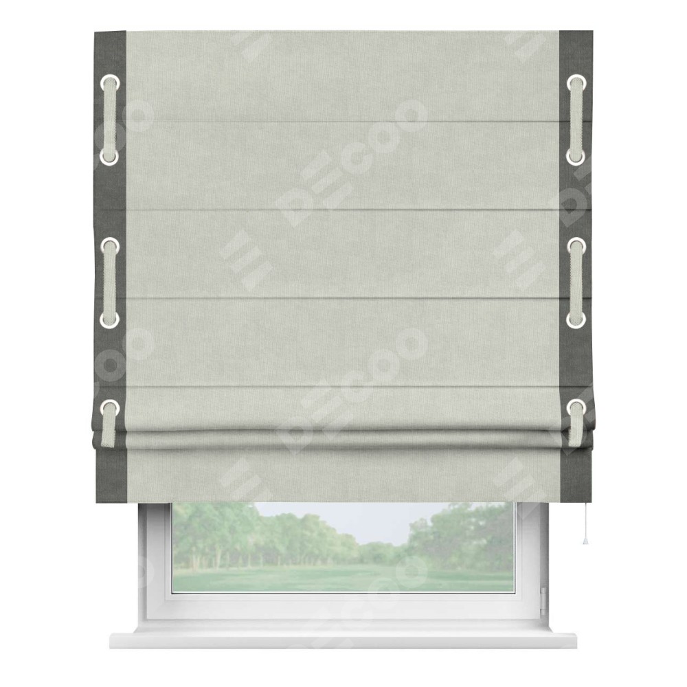 Римская штора «Кортин» для проема, канвас светло-серый, с кантом Стрим Дуо (люверсы с пояском)