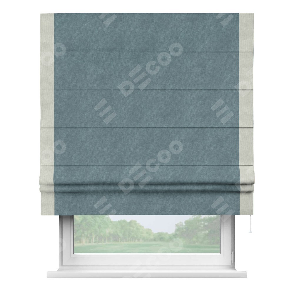 Римская штора «Кортин» для проема, канвас серо-голубой, с кантом Стрим Дуо