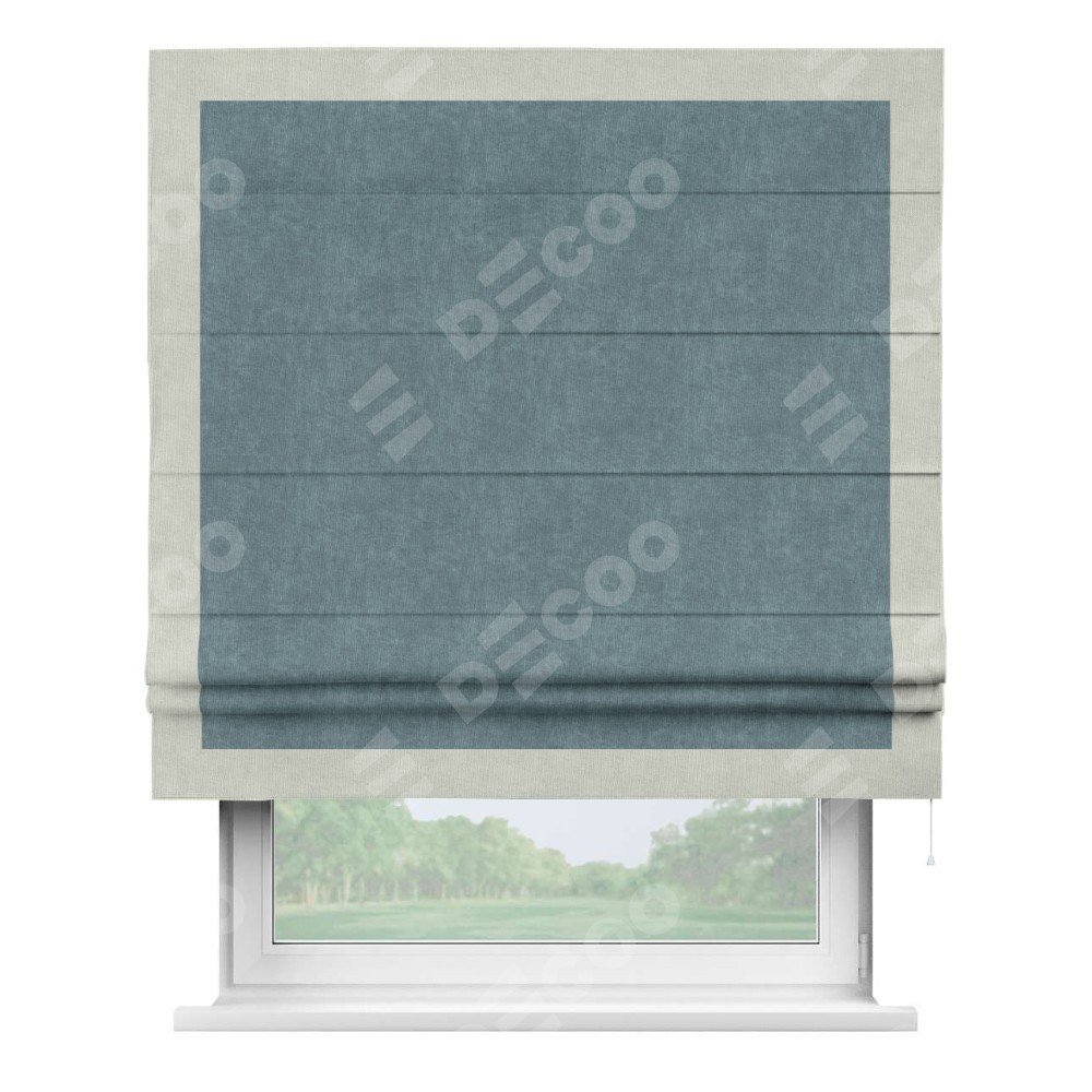 Римская штора «Кортин» для проема, канвас серо-голубой, с кантом Чесс