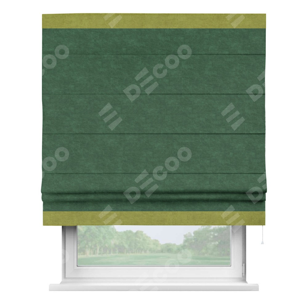 Римская штора «Кортин» для проема, канвас тёмно-зелёный, с кантом Горизонт