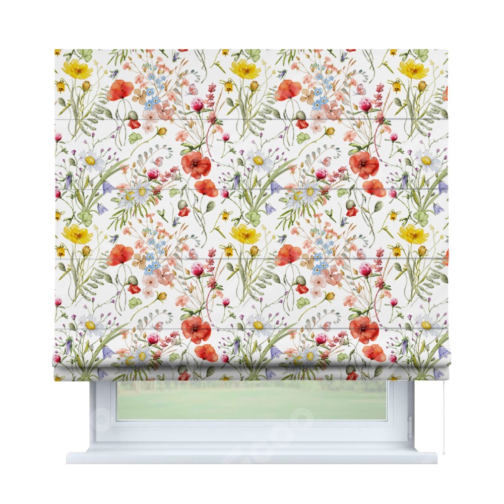 Классическая римская штора производителя «Cortin», пошита из ткани блэкаут с нанесением сублимационной печати «Полевые маки». Имеет универсальный механизм и подходит для монтажа: на потолок, на стену и в нишу.