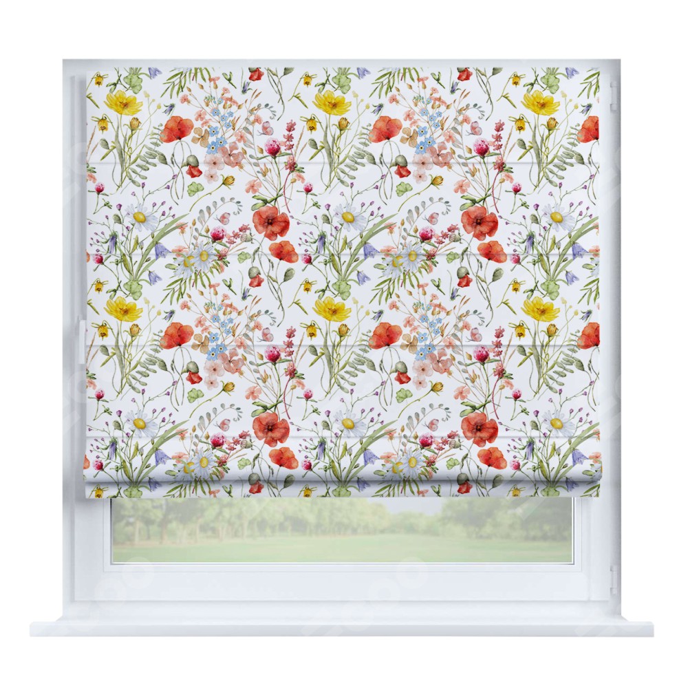 Римская штора «Кортин» на створку «Полевые маки» отлично подойдёт для интерьера: на балкон, в гостиную и в спальню.