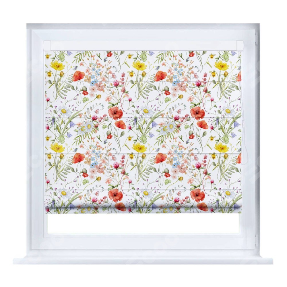 Римская штора «Кортин» на створку «Полевые маки» предоставлена в следующих характеристиках: