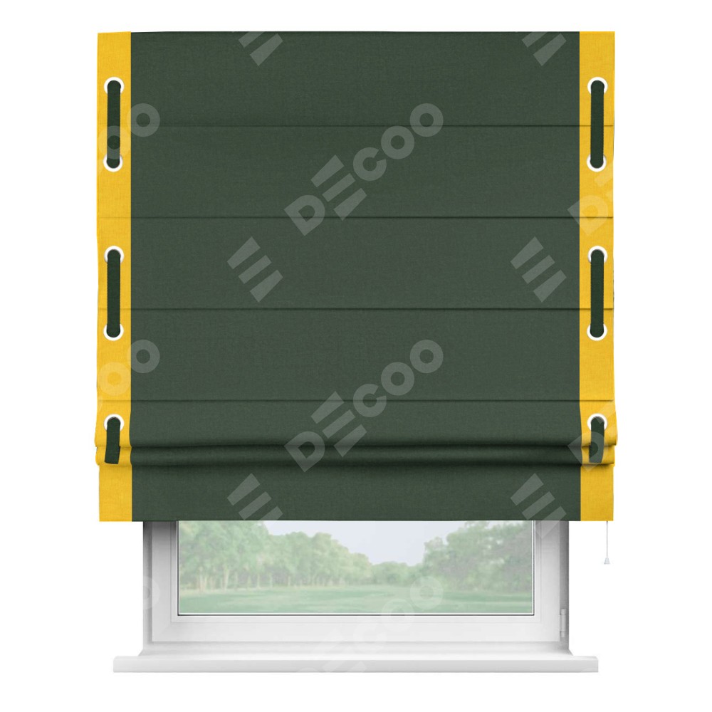 Римская штора «Кортин» для проема, канвас глубокий зелёный, с кантом Стрим Дуо (люверсы с пояском)