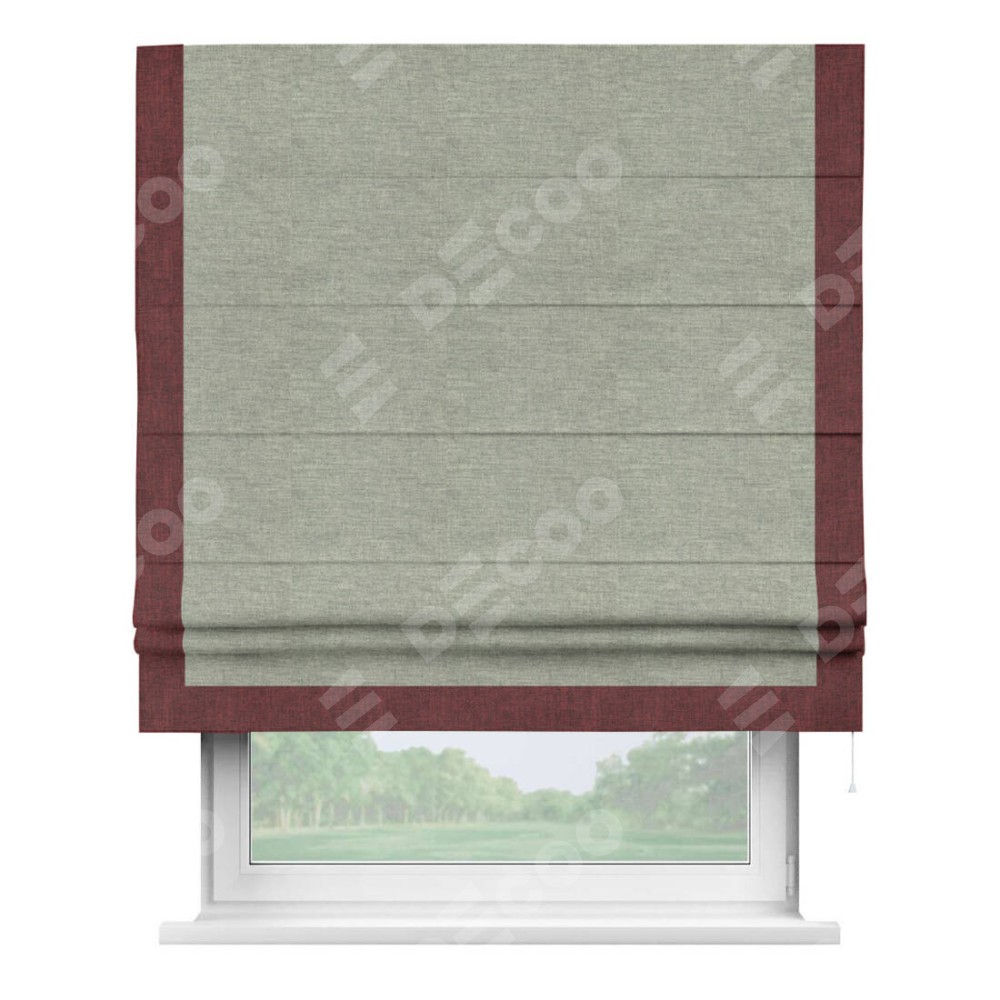 Римская штора производителя «Cortin», используется для проёма, пошита из ткани лён кашемир серый new, артикул 21618. Отделка шторы кантом «Виктория», ткань для канта используется из льна разной расцветки на выбор. Имеет универсальный механизм и подходит для монтажа: на потолок, на стену и в нишу.