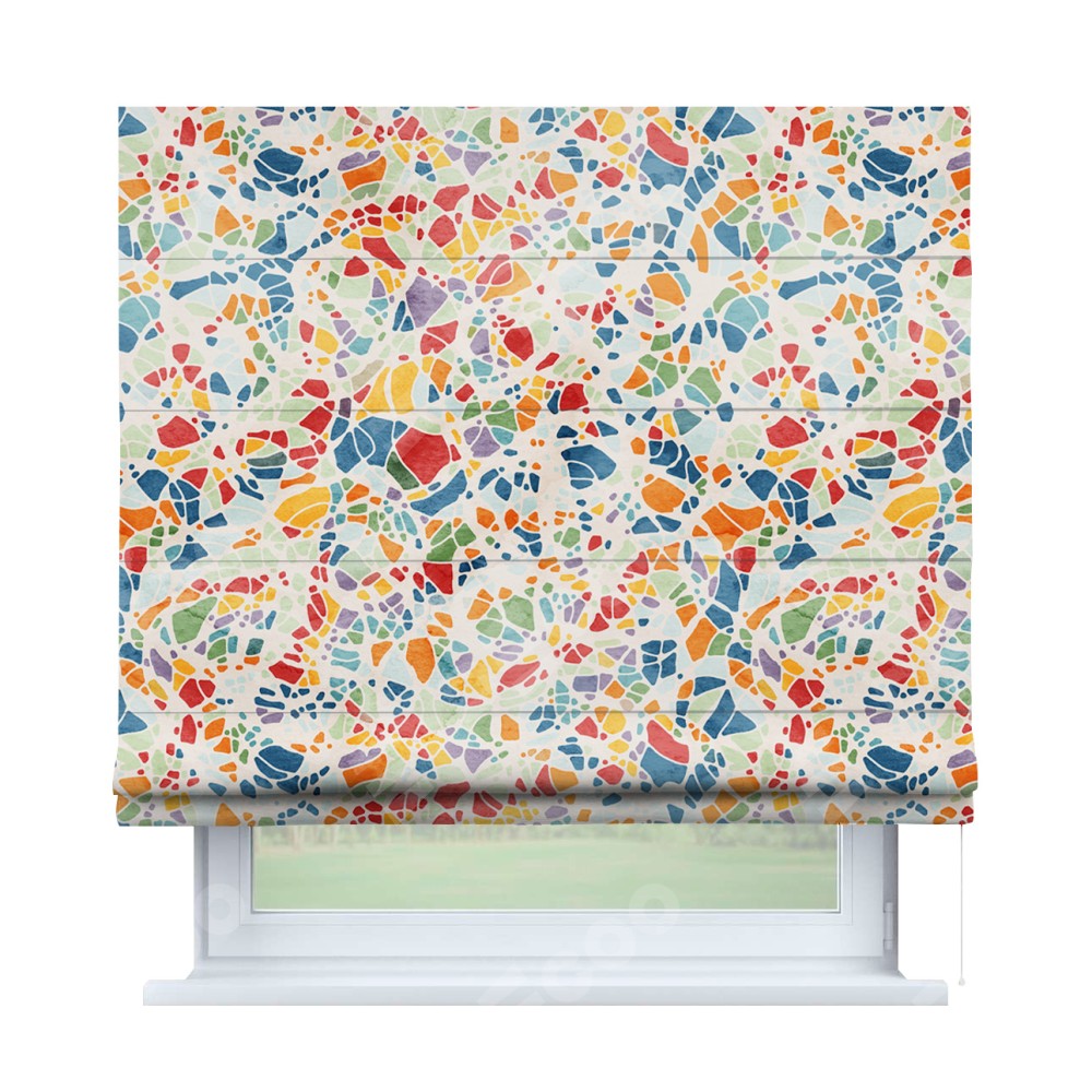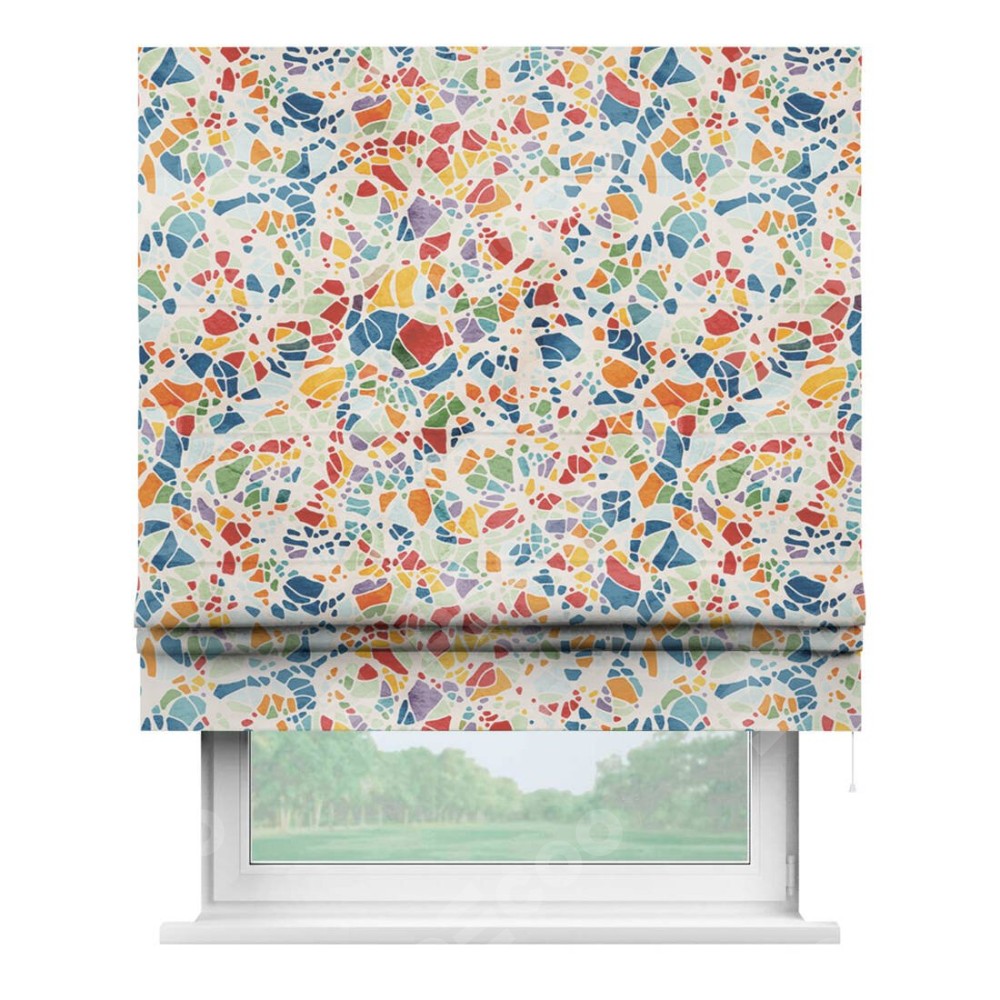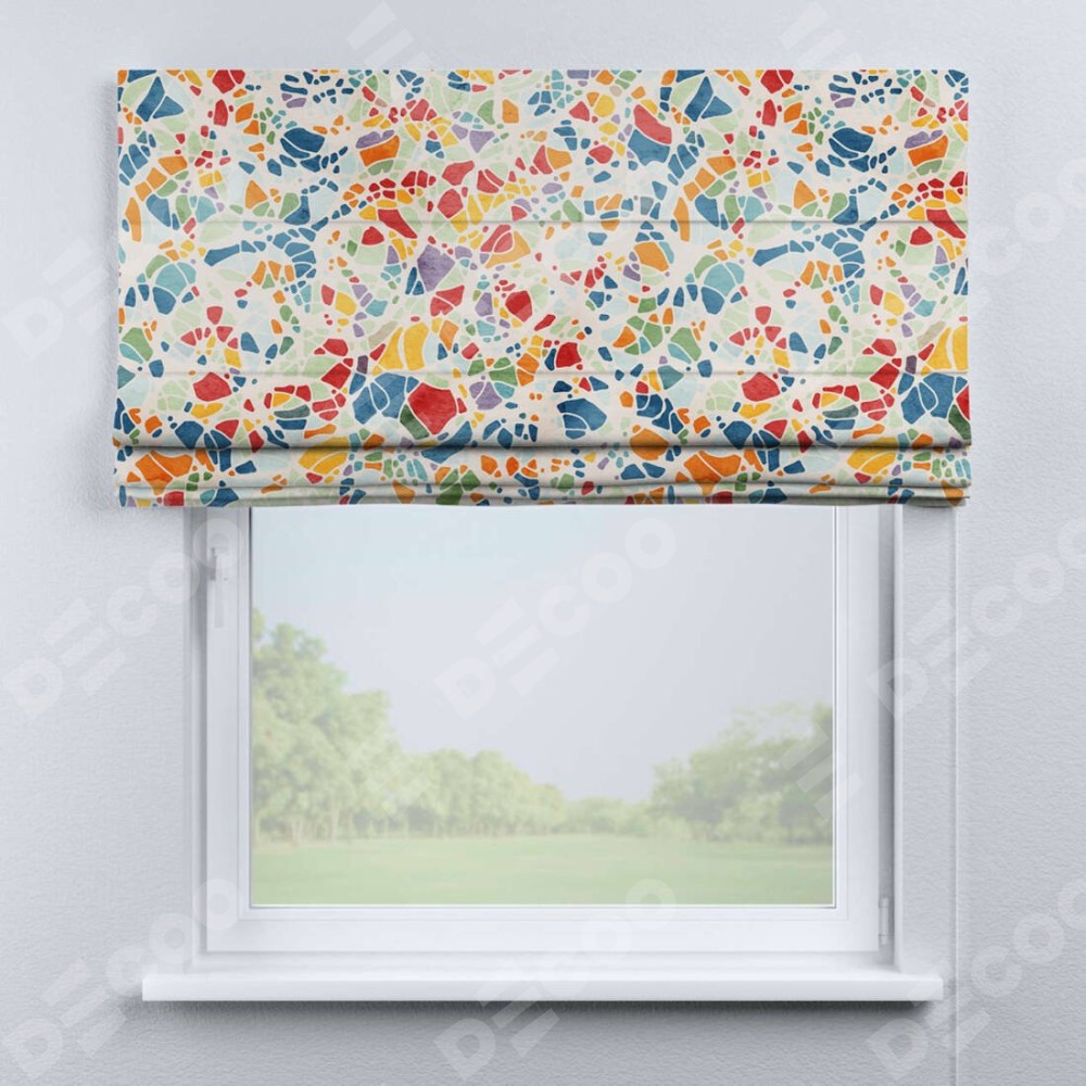 Классическая римская штора производителя «Cortin», пошита из ткани блэкаут с нанесением сублимационной печати «Калейдоскоп». Имеет универсальный механизм и подходит для монтажа: на потолок, на стену и в нишу.