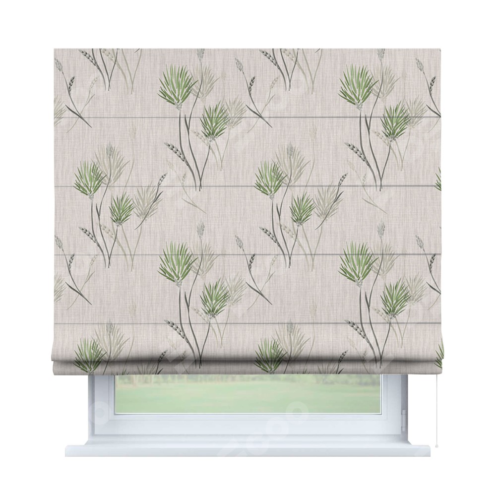 Классическая римская штора производителя «Cortin», пошита из ткани блэкаут с нанесением сублимационной печати «Полевые травы бежевый». Имеет универсальный механизм и подходит для монтажа: на потолок, на стену и в нишу.