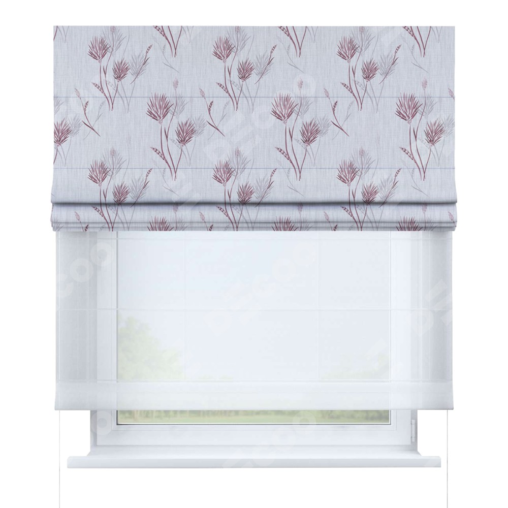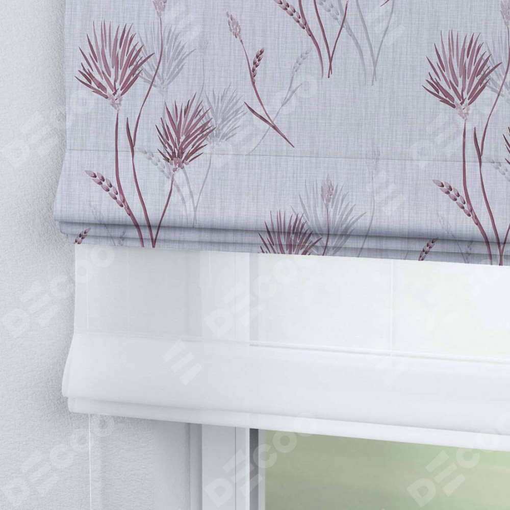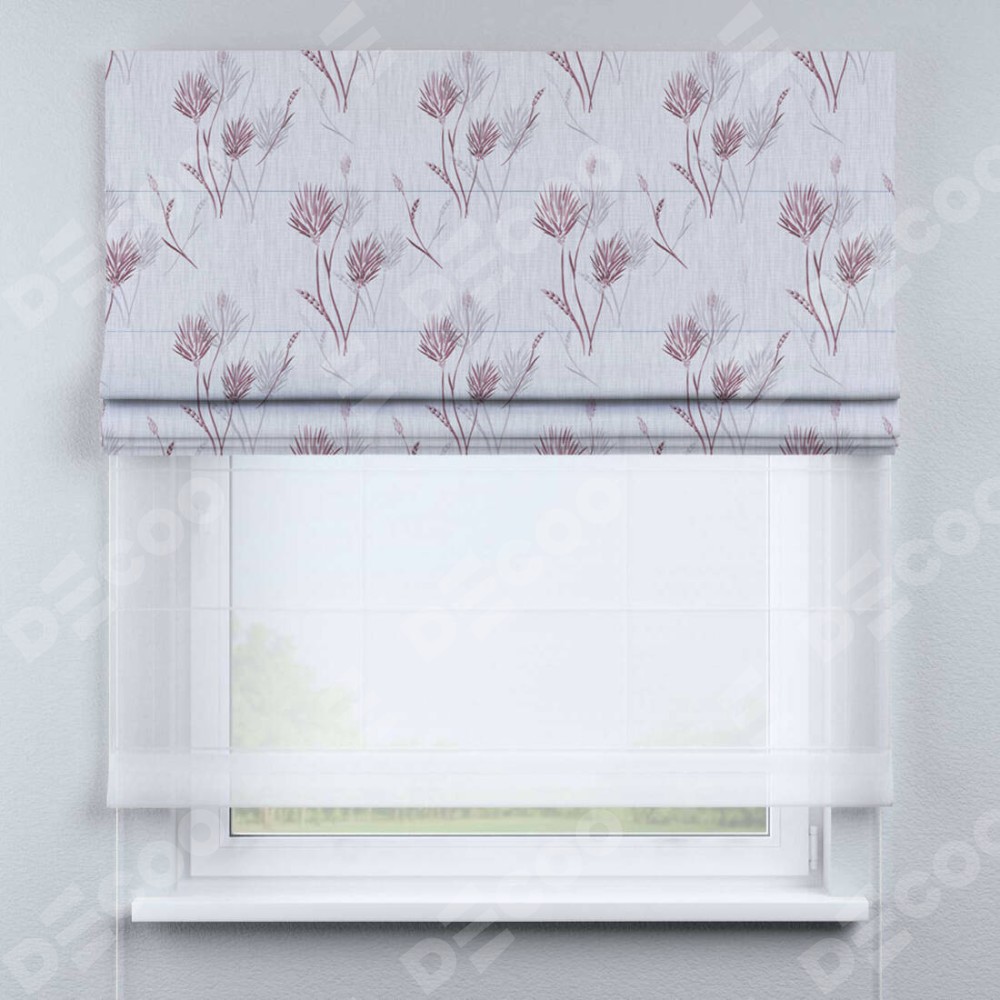 Двойная римская штора «День-ночь» от производителя Cortin предназначена для использования в проёмах. Эта штора уникальна тем, что состоит из двух полотен. На лицевой стороне находится блэкаут с нанесением сублимационной печати «Полевые травы серый», обеспечивающий эффективное затемнение. В комплект также входит вторая ткань — легкий белый тюль (артикул: V-01), который добавляет изящества и легкости оформлению окна. Кроме того, доступны и другие разновидности ткани тюль, выбор которых доступен по ссылке .