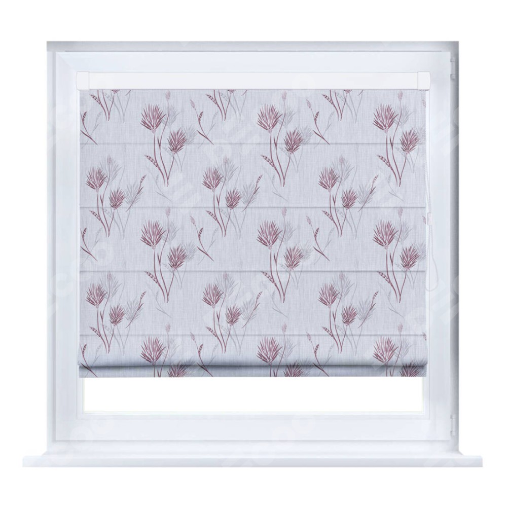 Римская штора производителя «Cortin», устанавливается на створку окна, пошита из ткани блэкаут с нанесением сублимационной печати «Полевые травы серый». Штора шьётся по индивидуальным размерам, для данного типа римской шторы возможная ширина от 35 до 150 см., высота до 250 см.