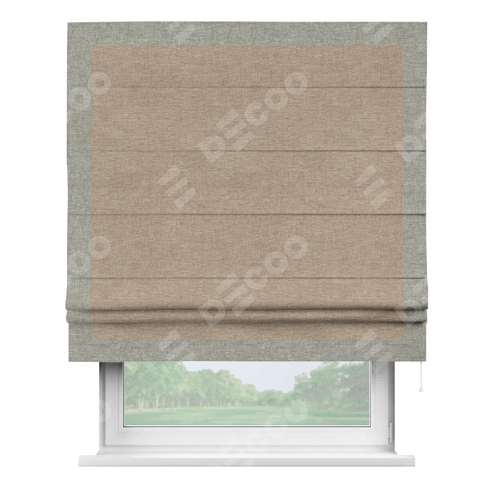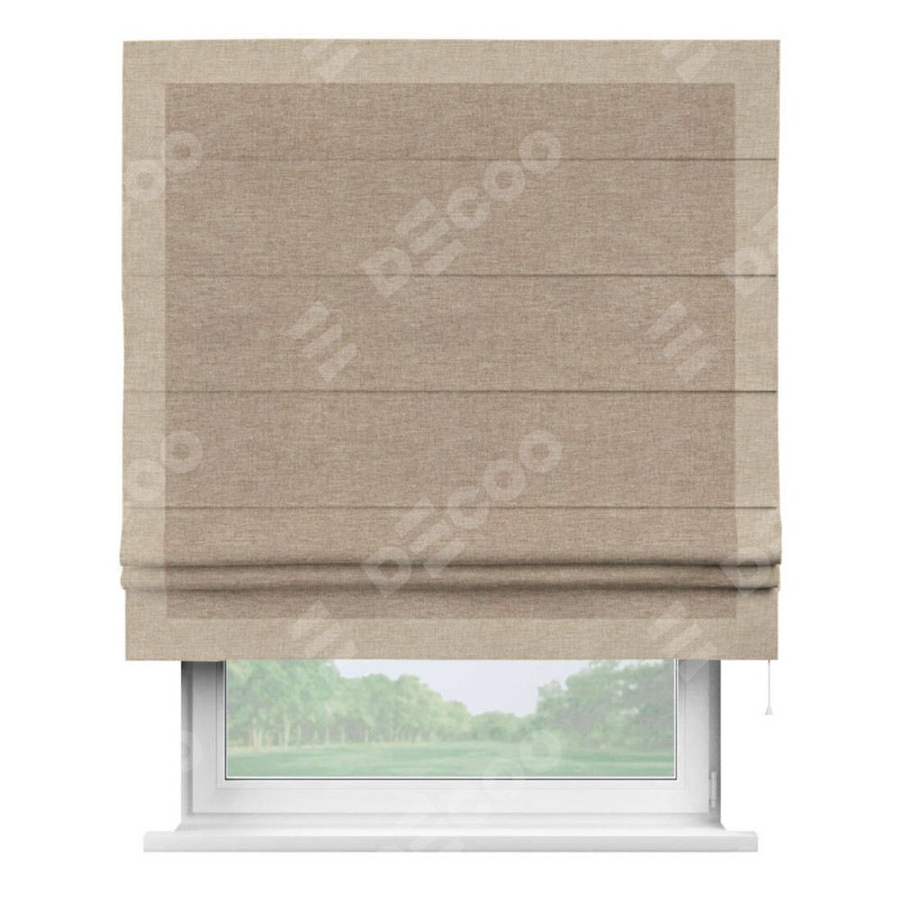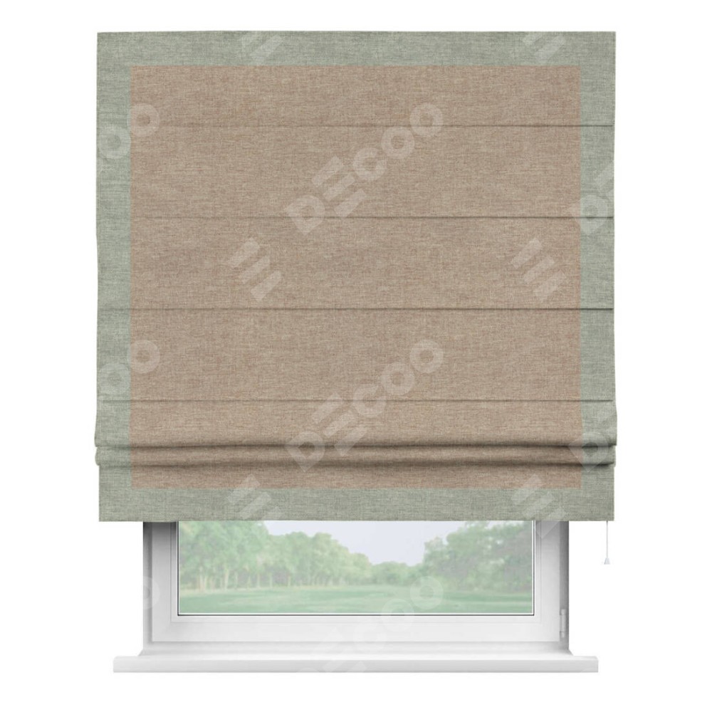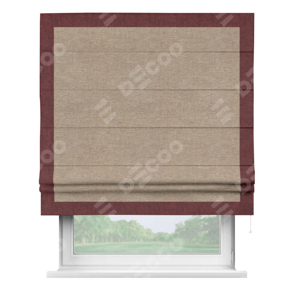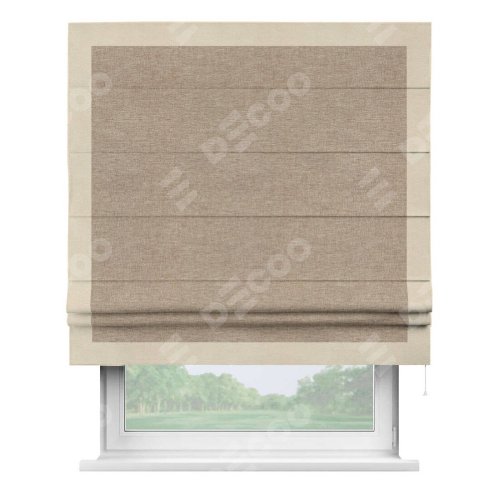 Римская штора «Кортин» с кантом Чесс, для проема, ткань лён кашемир коричневый