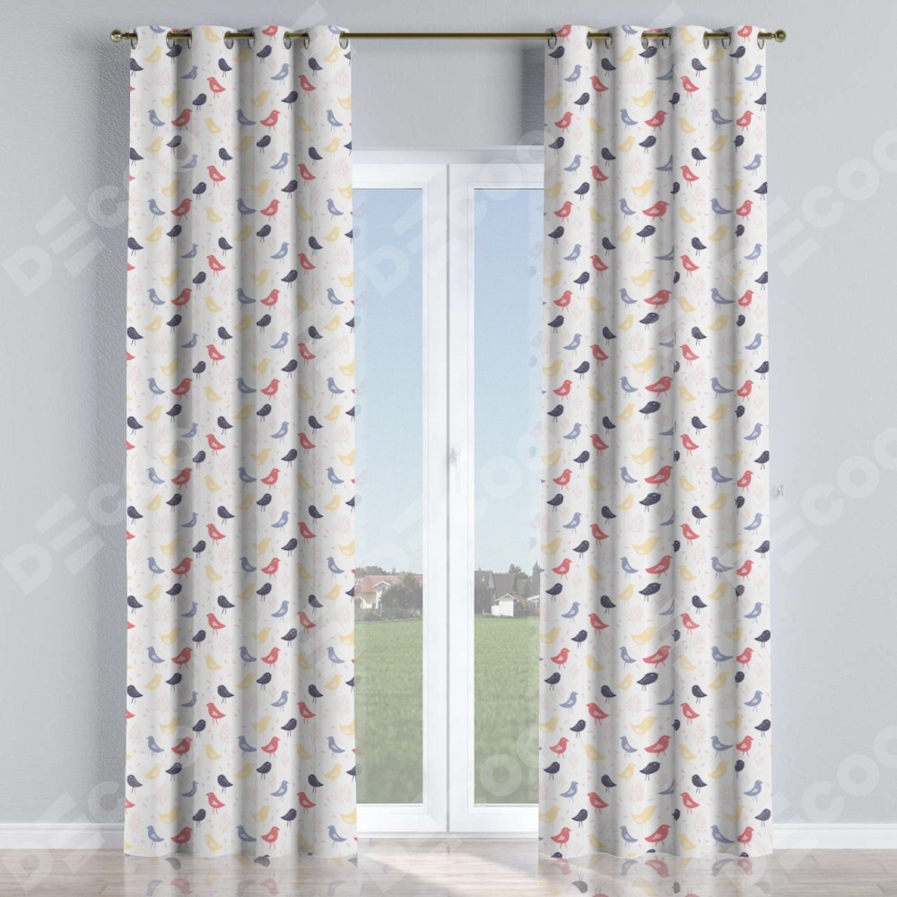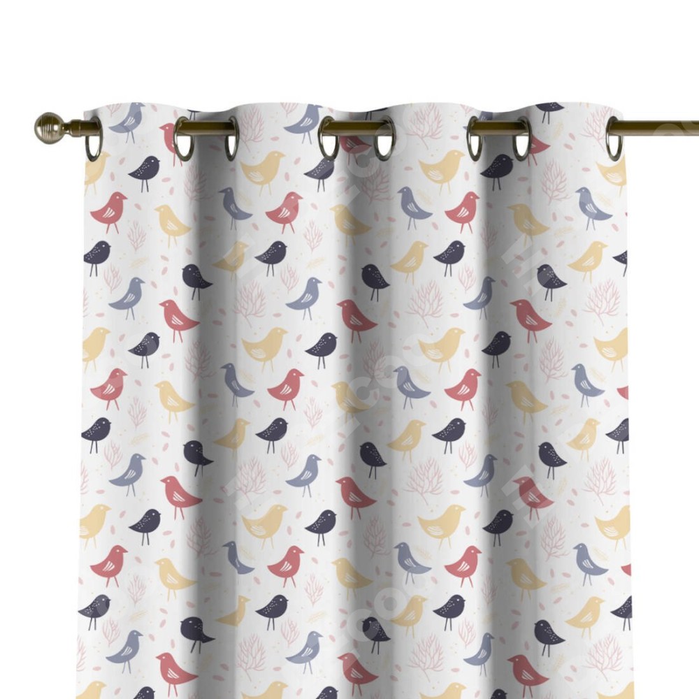 Комплект штор на люверсах «Цветные птички» отлично подойдёт для интерьера шторы для комнаты, для дачи и шторы на кухню.