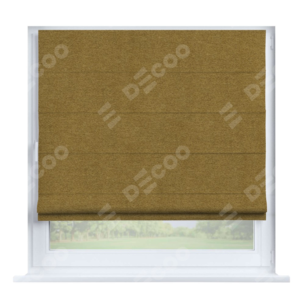 Римская штора производителя «Cortin», устанавливается на створку окна, пошита из ткани твид блэкаут горчица, артикул 91237. Штора шьётся по индивидуальным размерам, для данного типа римской шторы возможная ширина от 35 до 150 см., высота до 250 см.