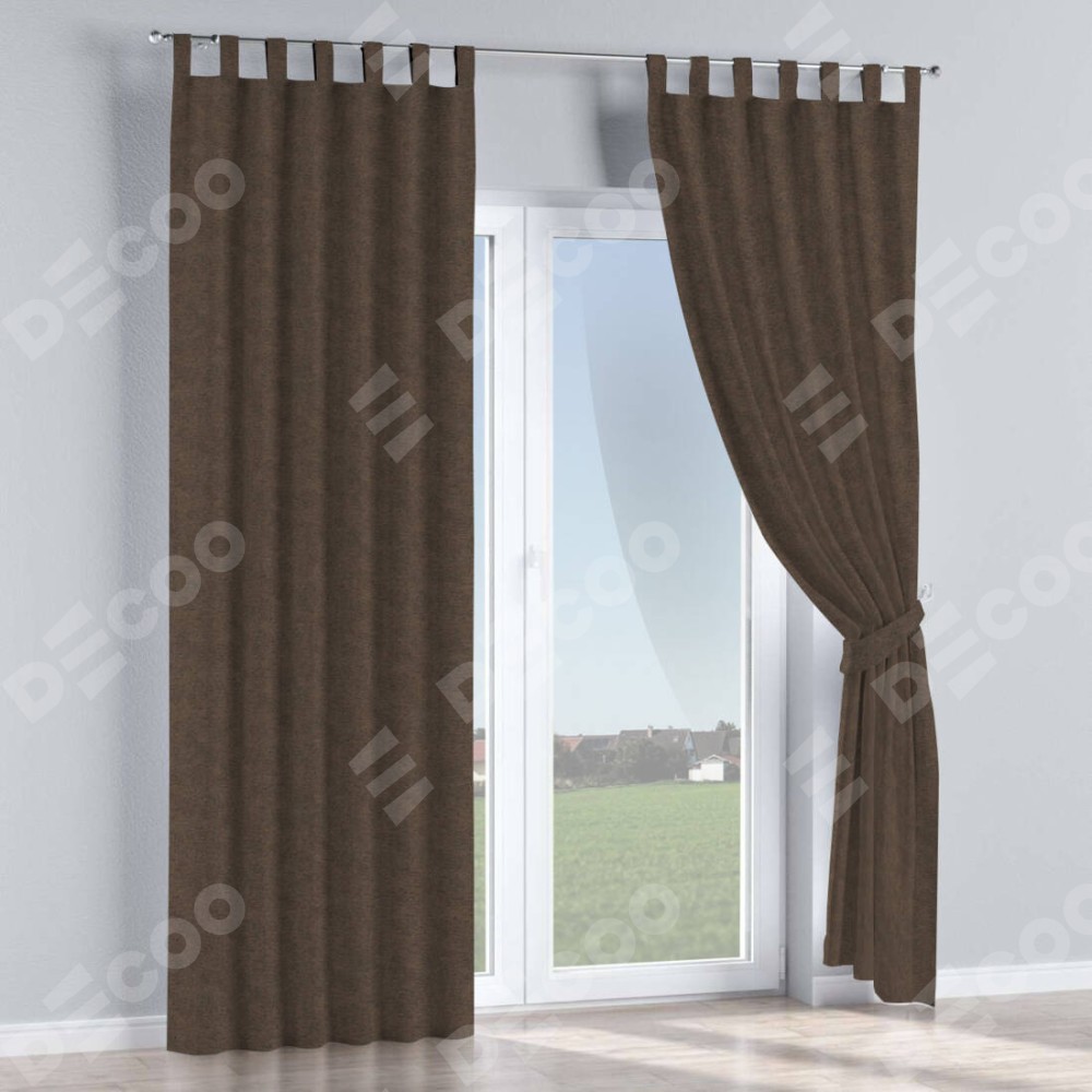 Комплект прямых штор, от производителя «Cortin», пошиты из ткани твид блэкаут тёмно-коричневый, артикул ткани 90933. Данная модель пошита на петлях, комплектуется на выбор круглым карнизом и подходит для монтажа на стену или потолок. Прямые шторы на петлях шьются по стандарту с коэффициентом 1/2 (на 100 см. ширины проёма 200 см. ширины ткани), отличительным преимуществом данной модели является простой способ монтажа. Достаточно повесить ее на трубу и штора готова!