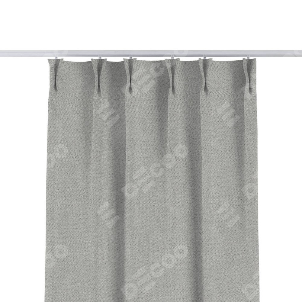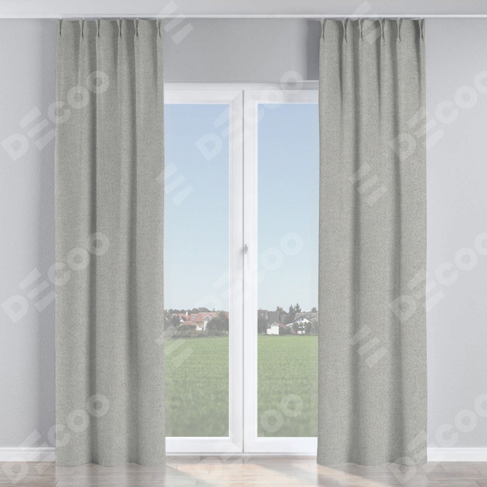 Комплект прямых штор, от производителя «Cortin», пошиты из ткани твид блэкаут светло-серый, артикул ткани 90936. С изнаночной стороны в верхней части штор пристрачивается шторная лента с декоративными складками «Кустик». Для создания элегантных складок прямые шторы шьются по стандарту с коэффициентом 1:2 (на 100 см. ширины проёма 200 см. ширины ткани).