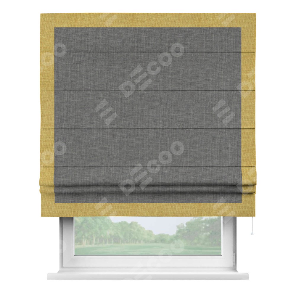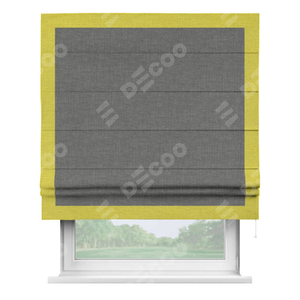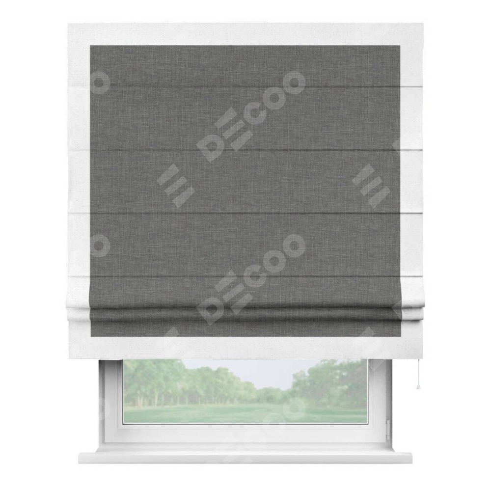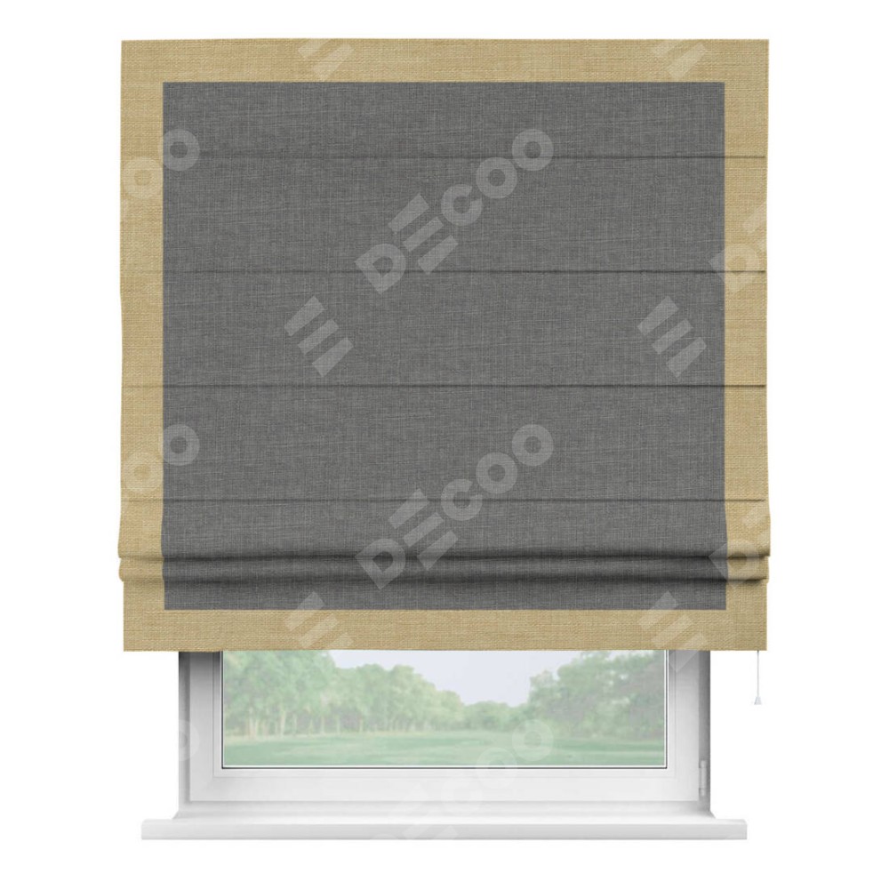 Римская штора «Кортин» с кантом Чесс, для проема, лён тёмно-серый
