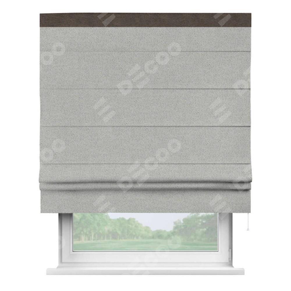 Римская штора «Кортин» для проема, твид блэкаут светло-серый, с кантом Кинг