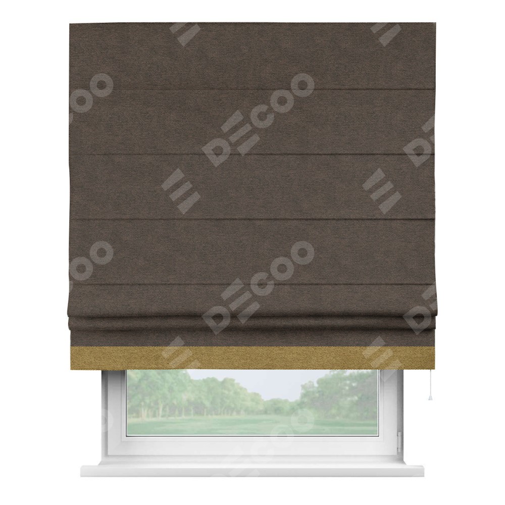 Римская штора «Кортин» для проема, твид блэкаут тёмно-коричневый, с кантом Джестер