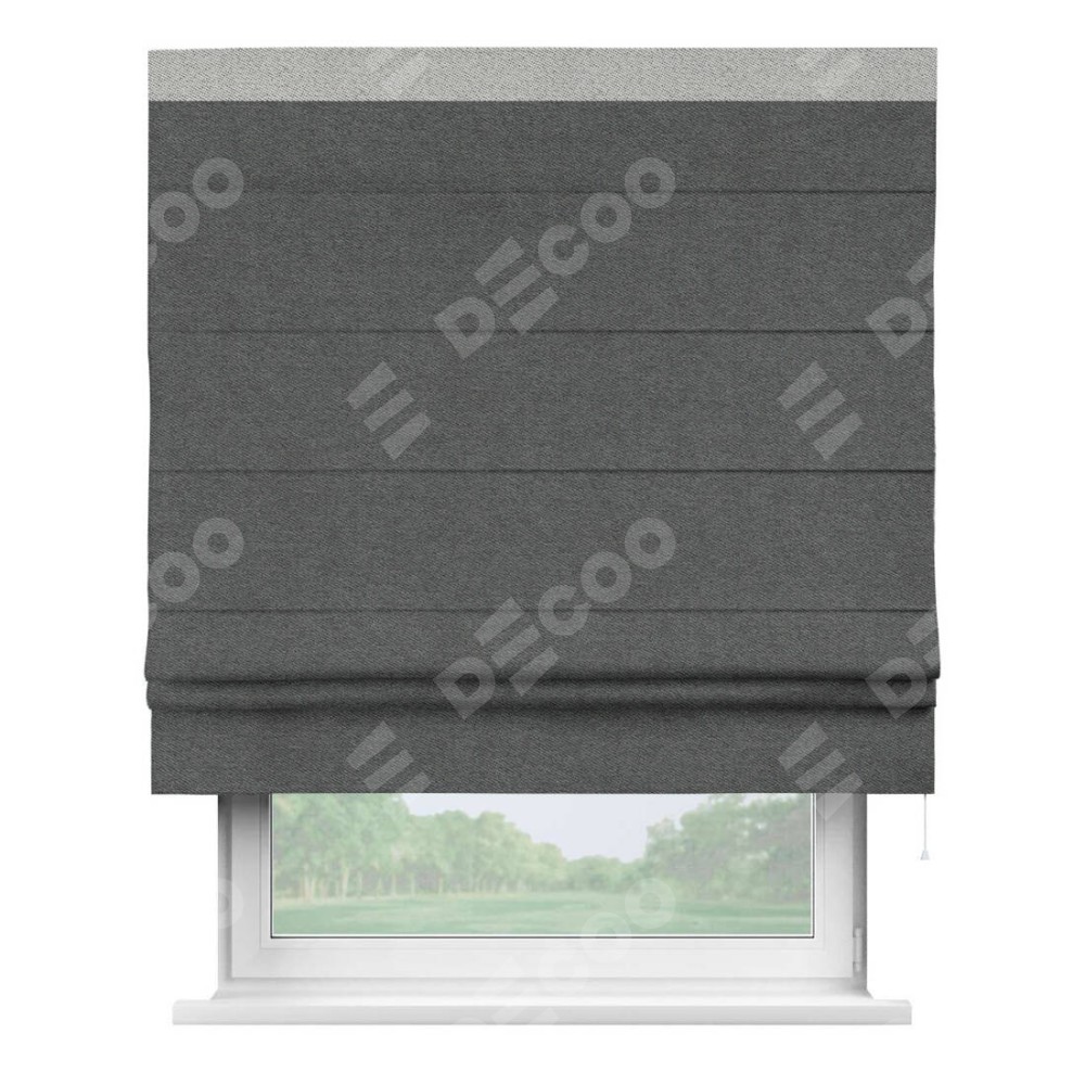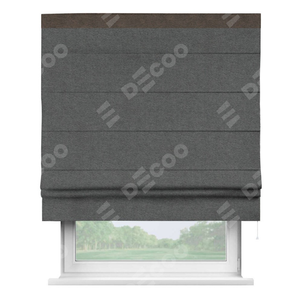 Римская штора «Кортин» для проема, твид блэкаут тёмно-серый, с кантом Кинг