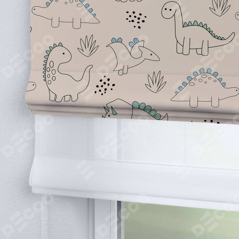 Римская штора «Кортин» день-ночь «Динозаврики» отлично подойдёт для интерьера: в детскую.