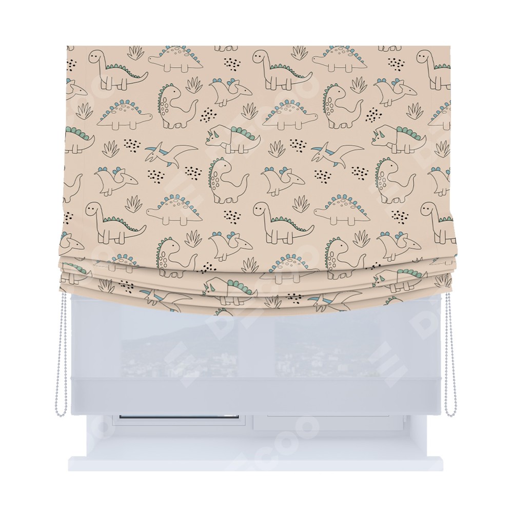 Римская штора «Кортин», день-ночь с мягкими складками, «Динозаврики»