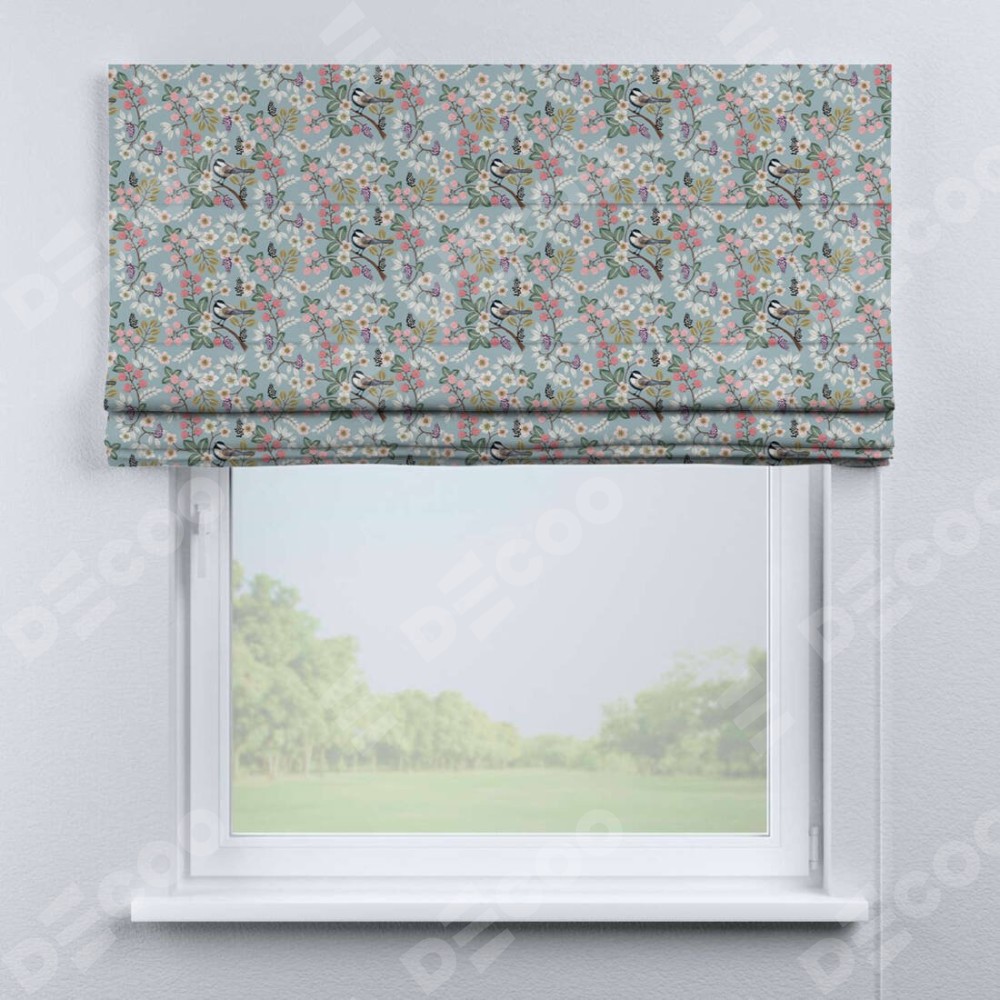 Классическая римская штора производителя «Cortin», пошита из ткани блэкаут с нанесением сублимационной печати «Ежевичное утро». Имеет универсальный механизм и подходит для монтажа: на потолок, на стену и в нишу.
