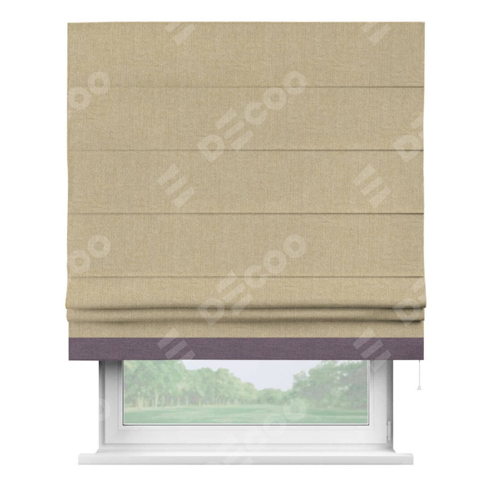 Римская штора «Кортин» для проема, лён димаут песочный с кантом Джестер