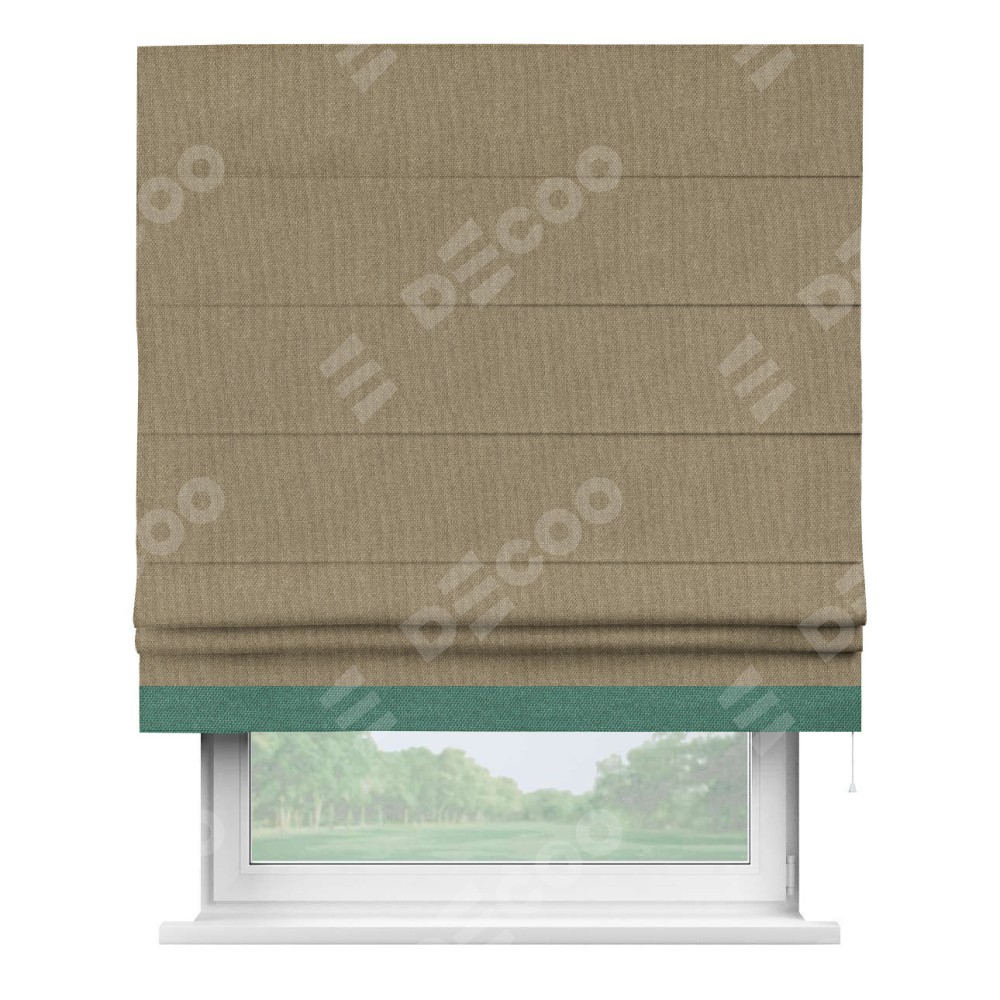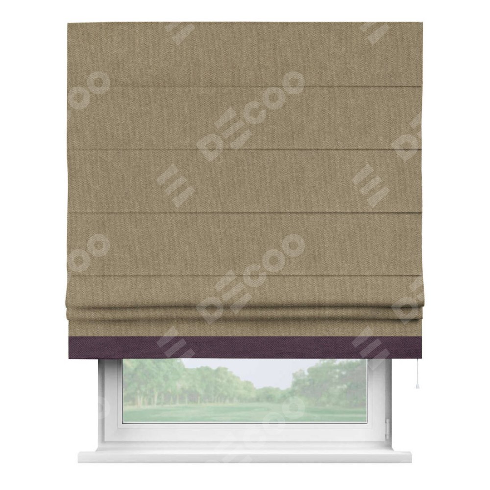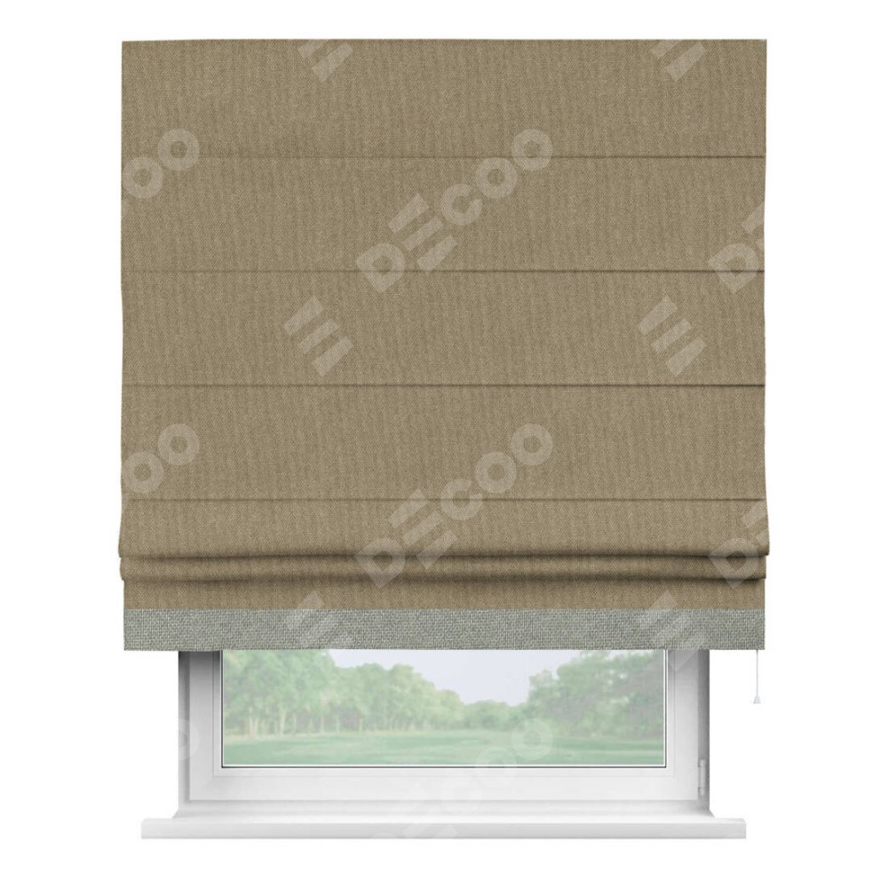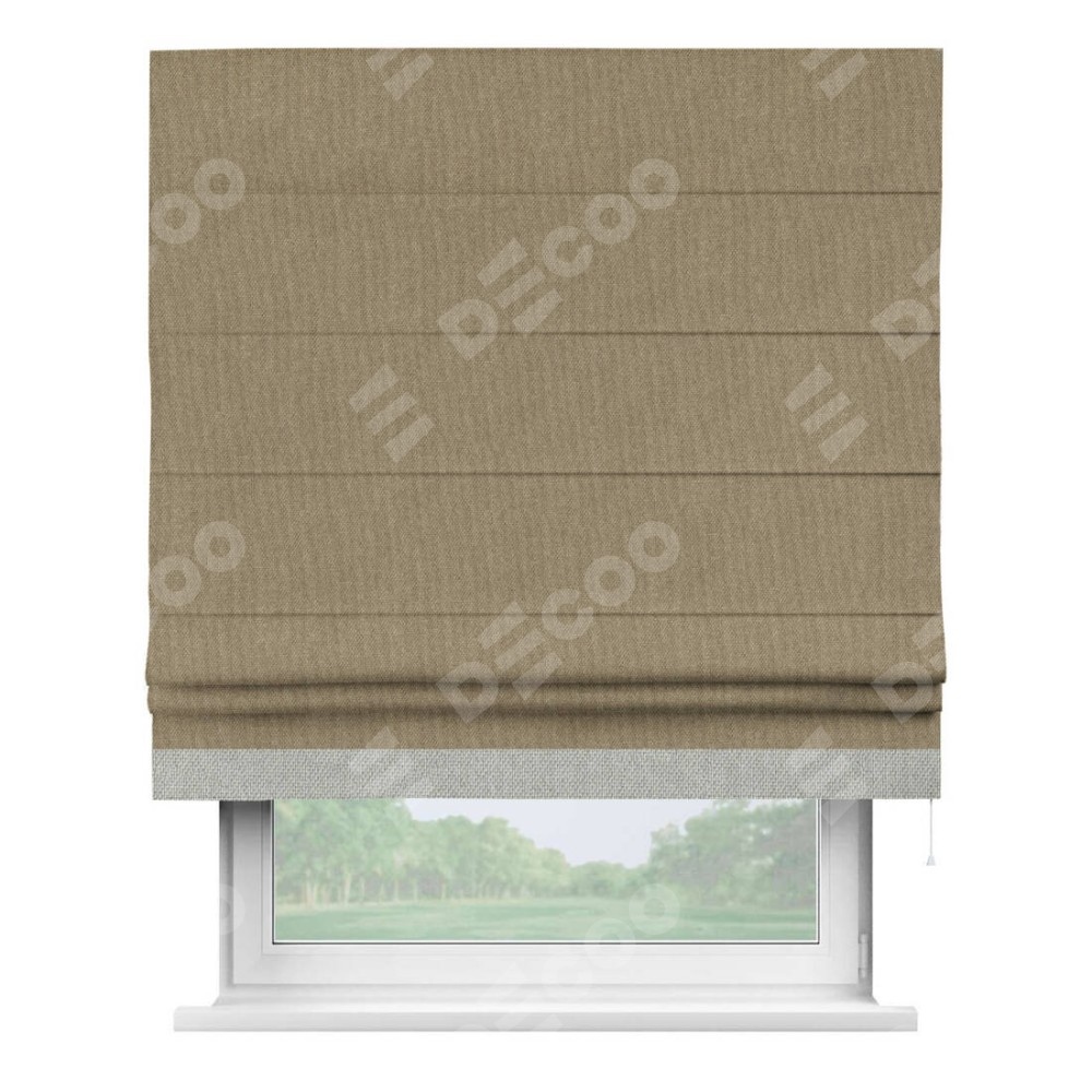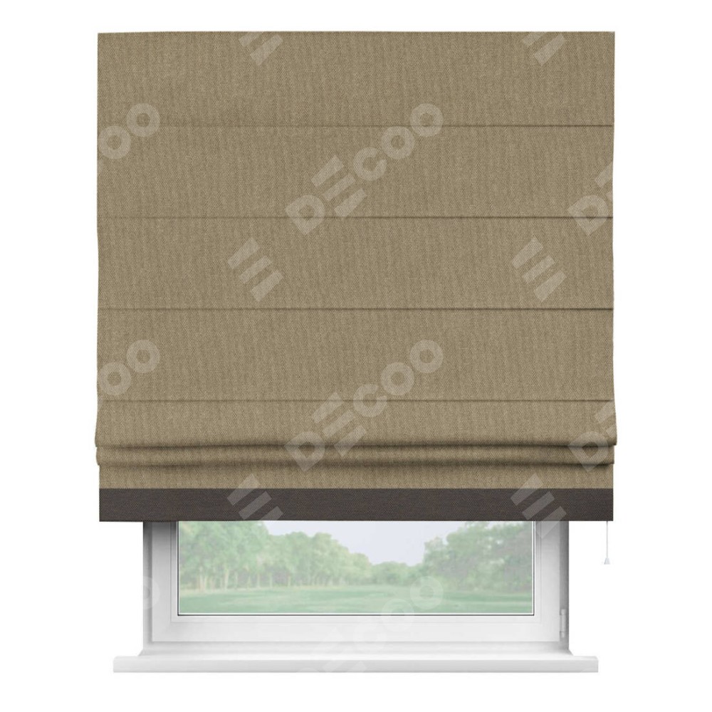 Римская штора «Кортин» для проема, лён димаут тёмно-бежевый с кантом Джестер