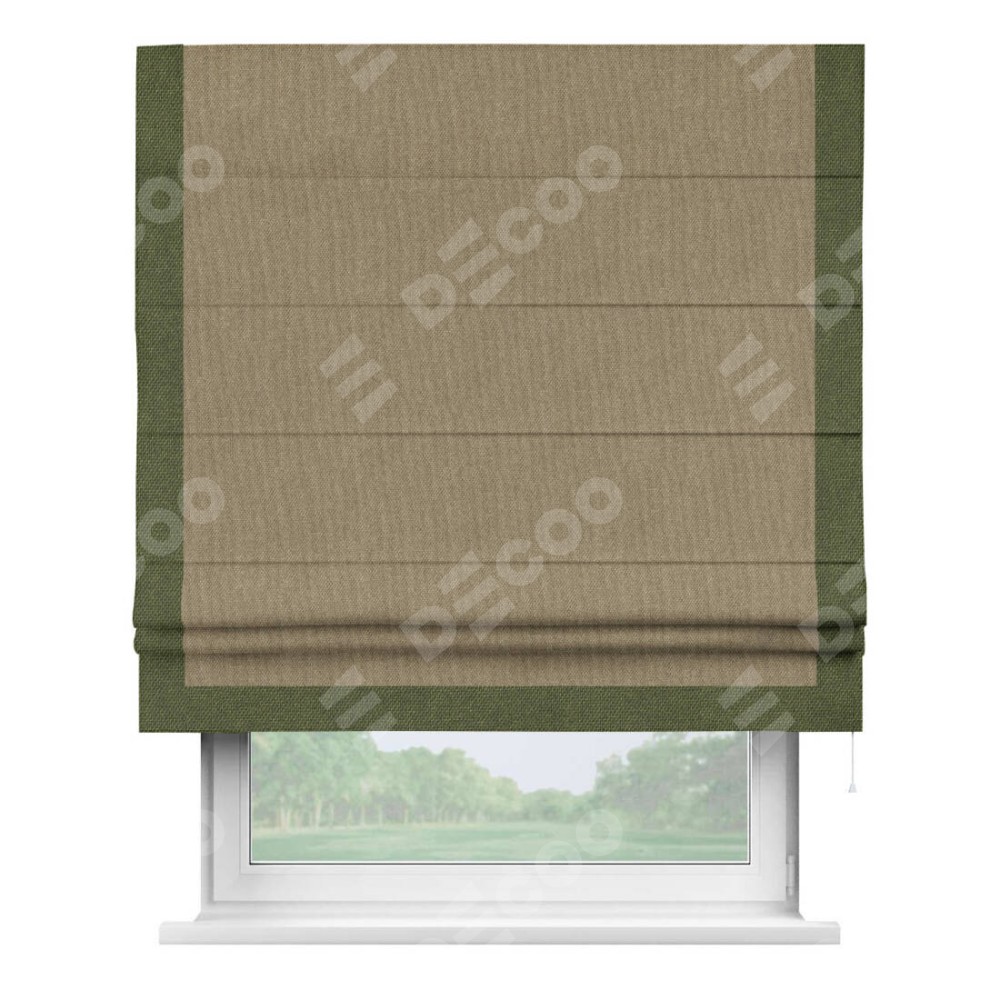 Римская штора «Кортин» для проема, лён димаут тёмно-бежевый с кантом Виктория