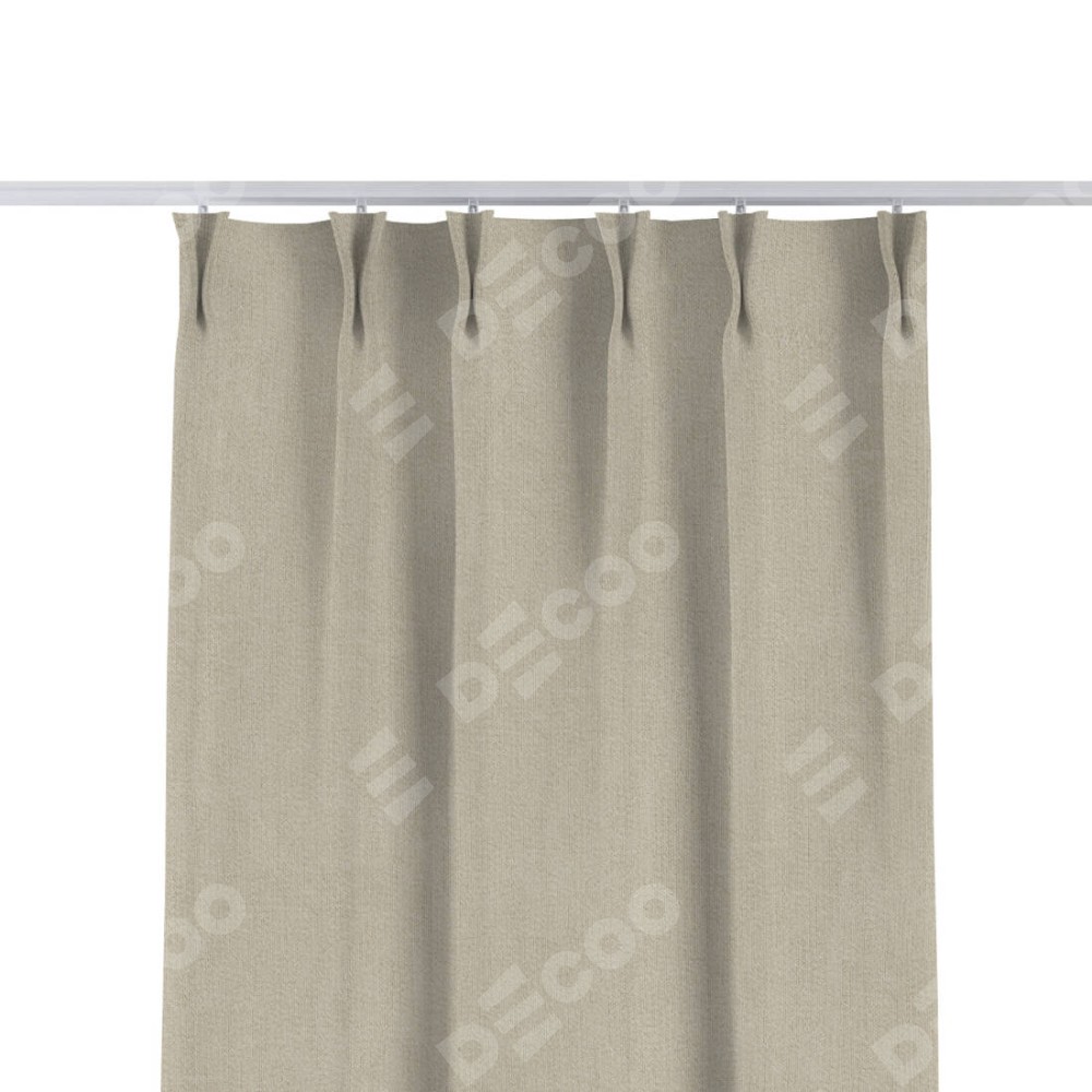 Комплект прямых штор, от производителя «Cortin», пошиты из ткани cotton блэкаут светло-бежевый, артикул ткани 71119. С изнаночной стороны в верхней части штор пристрачивается шторная лента с декоративными складками «Кустик». Для создания элегантных складок прямые шторы шьются по стандарту с коэффициентом 1:2 (на 100 см. ширины проёма 200 см. ширины ткани).
