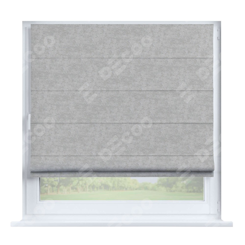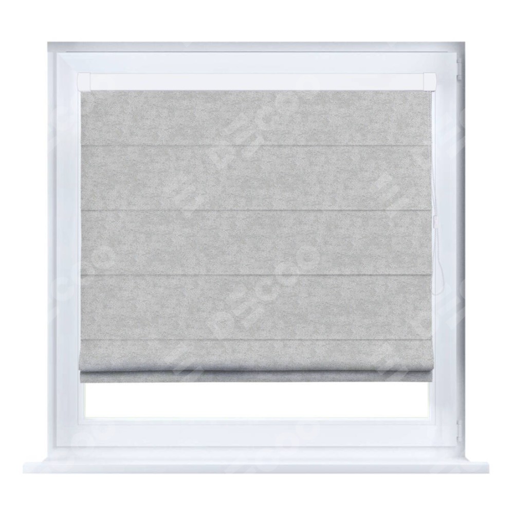Римская штора производителя «Cortin», устанавливается на створку окна, пошита из ткани софт мрамор светло-серый, артикул 93582. Штора шьётся по индивидуальным размерам, для данного типа римской шторы возможная ширина от 35 до 150 см., высота до 250 см.