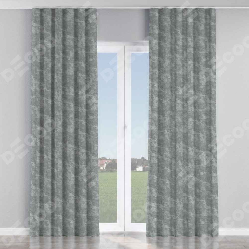 Комплект прямых штор, от производителя «Cortin», пошиты из ткани софт мрамор серый, артикул ткани 93583. С изнаночной стороны в верхней части штор пристрачивается шторная лента с декоративными складками «Волна». Для создания элегантных складок прямые шторы шьются по стандарту с коэффициентом 1:2 (на 100 см. ширины проёма 200 см. ширины ткани).