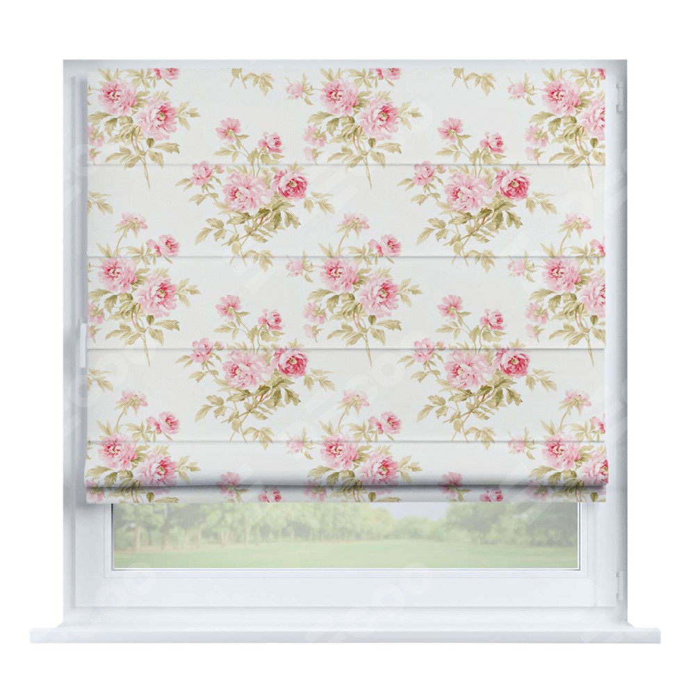 Римская штора производителя «Cortin», устанавливается на створку окна, пошита из ткани блэкаут с нанесением сублимационной печати «Английский шебби-шик». Штора шьётся по индивидуальным размерам, для данного типа римской шторы возможная ширина от 35 до 150 см., высота до 250 см.