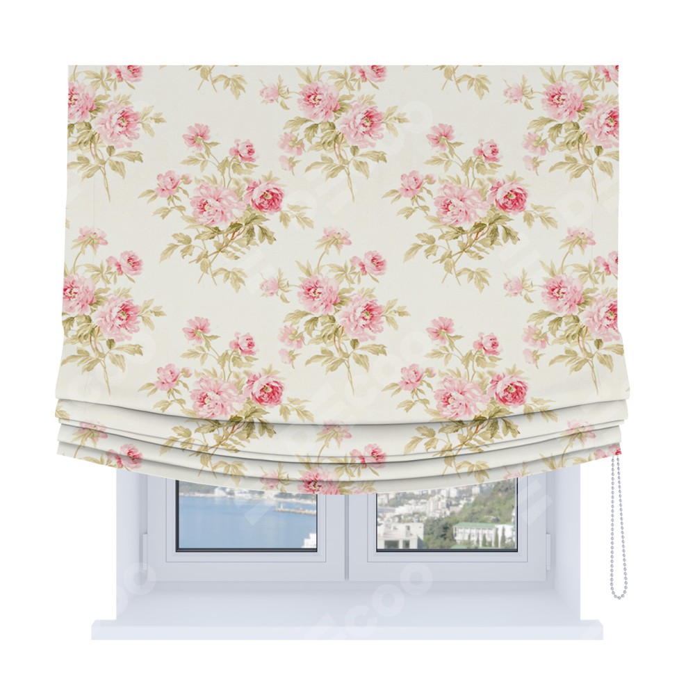 Римская штора Soft производителя «Cortin», используется для проёма, пошита из ткани блэкаут с нанесением сублимационной печати «Английский шебби-шик». Имеет универсальный механизм и подходит для монтажа: на потолок, на стену и в нишу. В отличие от стандартных римских штор, римская штора Soft не имеет горизонтальных вставок и нижнего отвеса. Это позволяет ткани произвольно драпироваться в свободные мягкие складки.