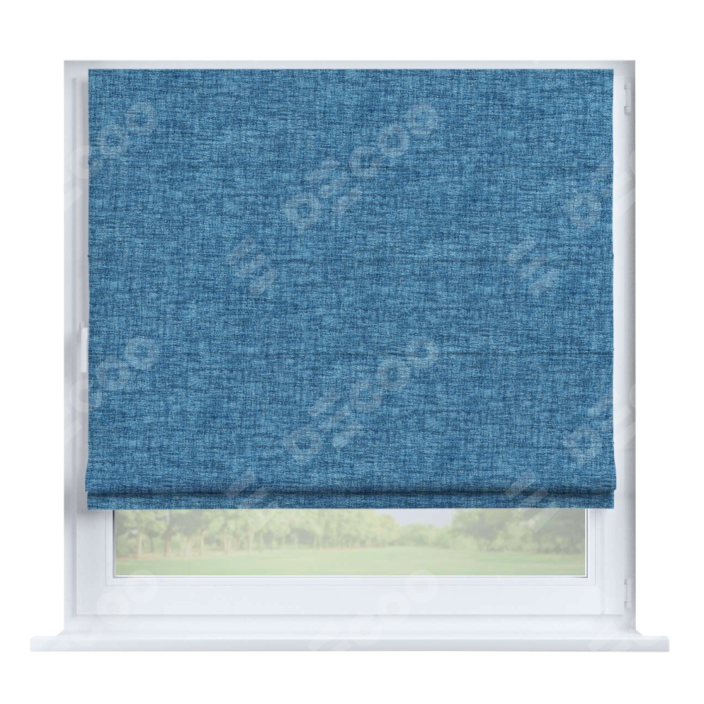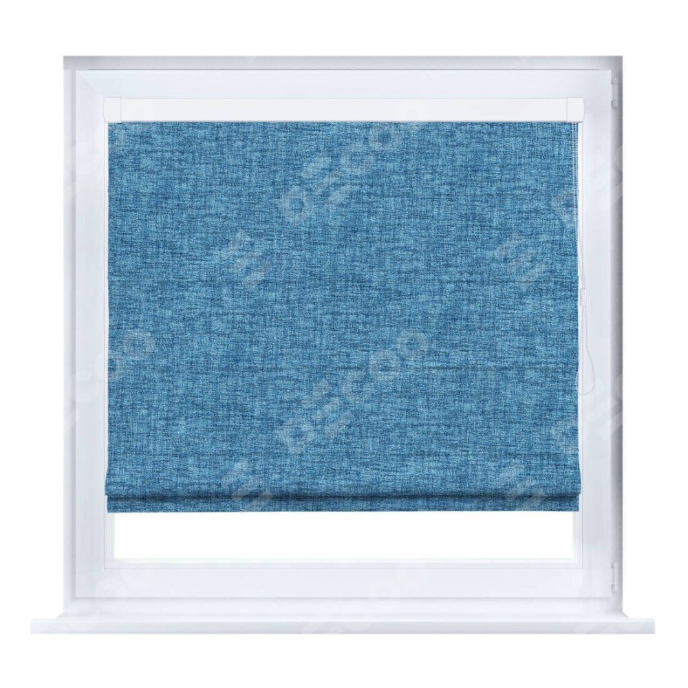Римская штора производителя «Cortin», устанавливается на створку окна, пошита из ткани рогожка димаут джинс, артикул 91026. Штора шьётся по индивидуальным размерам, для данного типа римской шторы возможная ширина от 35 до 150 см., высота до 250 см.