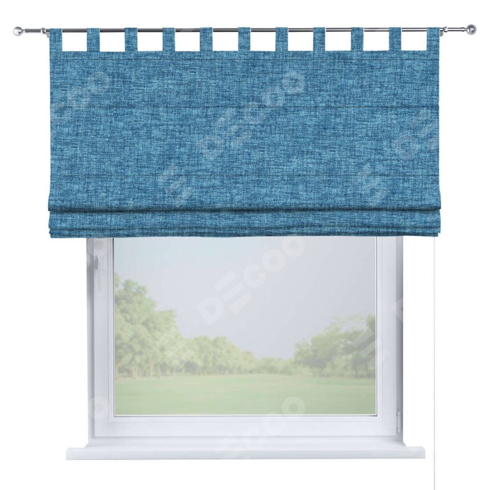 Римская штора производителя «Cortin», используется для проёма, пошита из ткани рогожка димаут джинс, артикул ткани 91026. Данная модель пошита на петлях, комплектуется на выбор круглым карнизом и подходит для монтажа на стену. Римская штора на петлях имеет простую систему регулировки высоты, отличительным преимуществом данной модели является простой способ монтажа. Достаточно повесить ее на трубу и штора готова!